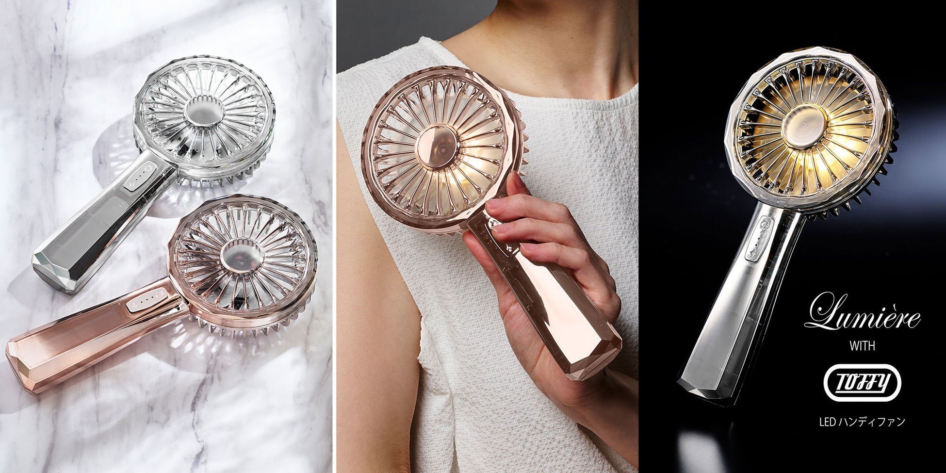 ハンディファンシリーズ史上※最も個性的で美しいデザイン(※:自社内)|Toffyから、ハーフミラーの効果で光をまとう新作ファンが登場!「リュミエール with Toffy LEDハンディファン」新発売