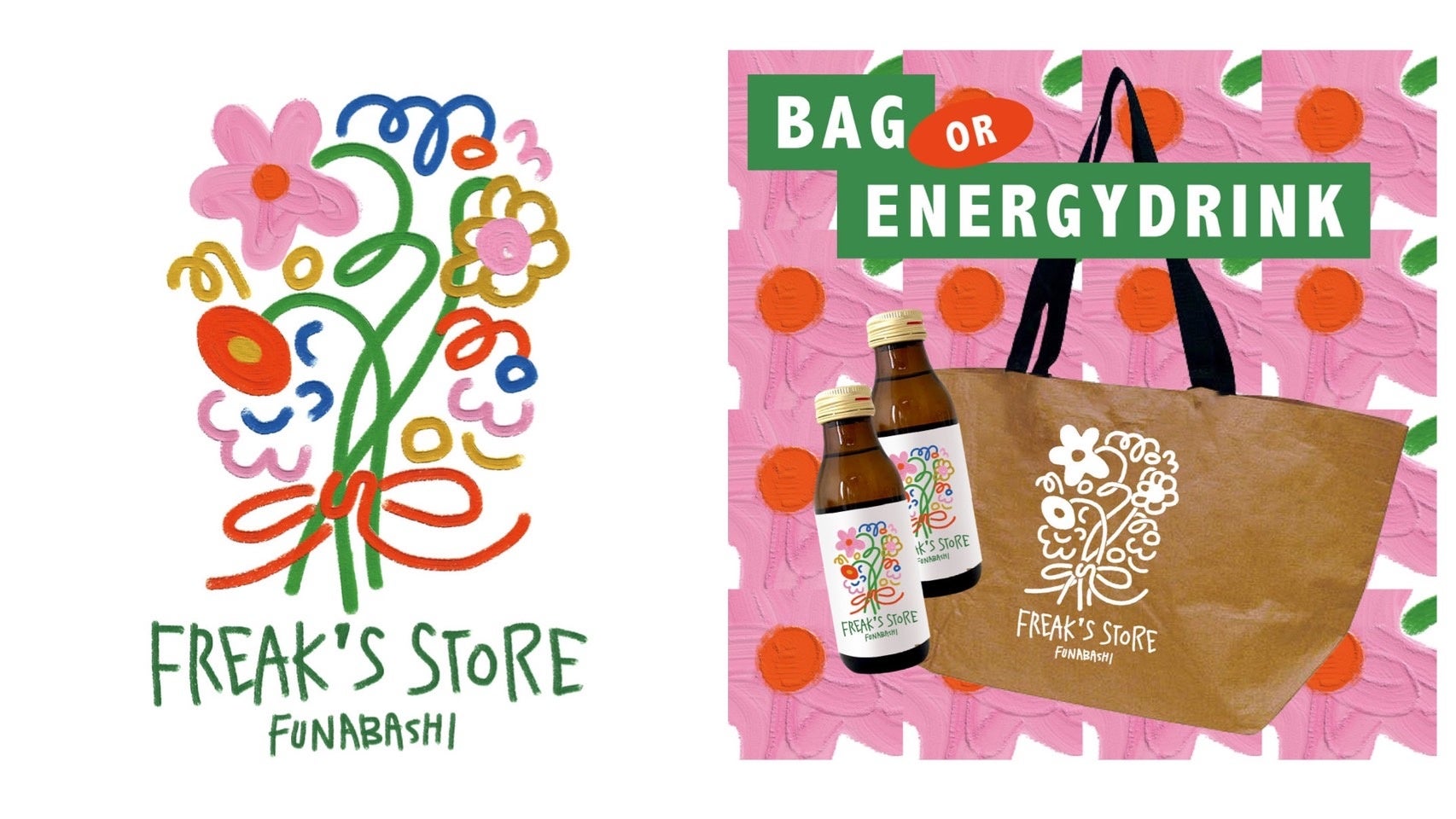 FREAK'S CLUB会員様(※当日入会の方も含む)限定!¥5,000(taxin)以上お買い上げにて、特製ノベルティをプレゼント!リニューアルオープンを記念して、アートな「祝い花」をイメージしたデザインのエコバッグ、もしくは栄養ドリンクをプレゼント!※なくなり次第終了となります。