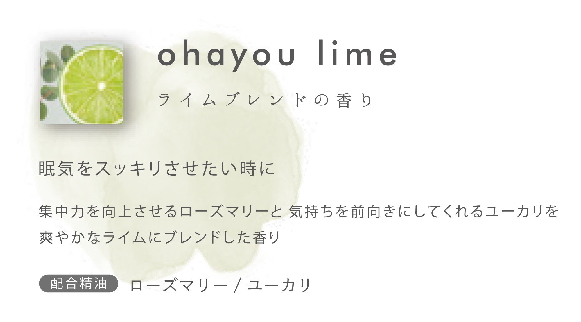2022年2月、朝の目覚め・心のリフレッシュにぴったりな『ohayou lime(ライムブレンドの香り)』を発売します。