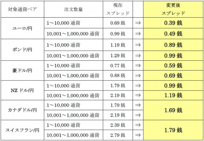 今回の基準スプレッド縮小により、100万通貨単位まで業界最狭水準となるスプレッド提供通貨ペアは拡大し、より多くのお客さまに低コストでのお取引をご提供できる環境となりました。是非、この機会にご検討ください。