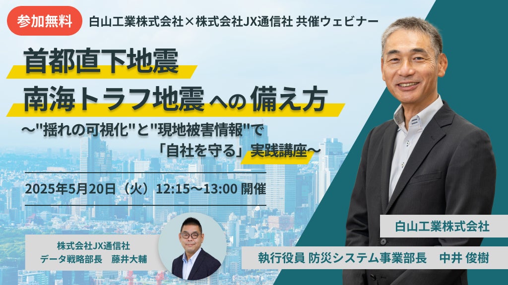 JX通信社、白山工業と無料共催ウェビナーを開催|首都直下地震・南海トラフ地震への備え
