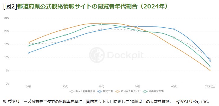 2024年の1年間で、上位3サイト(三重県、新潟県、岡山県)のサイト閲覧者の年代割合を比較しました[図2]。