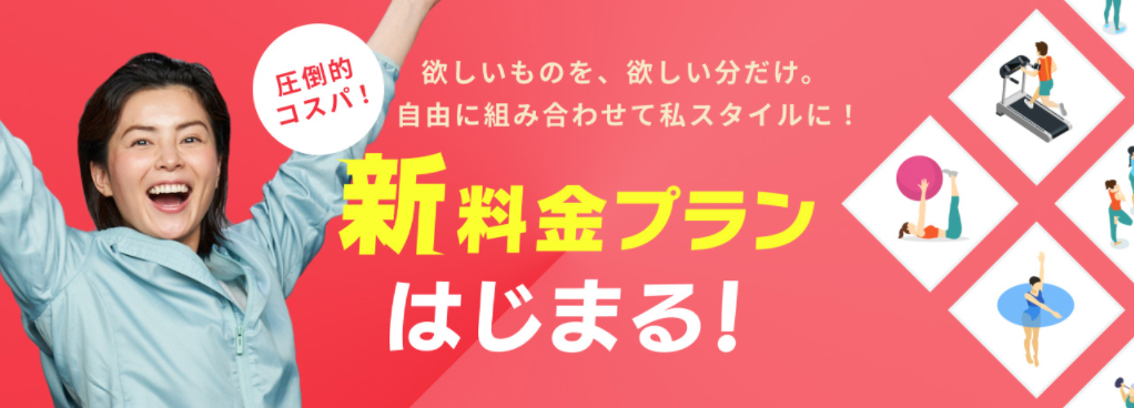 新プランは、ジム&プールが使い放題の『ベーシックプラン』を基本とします。スタジオレッスンに参加したい方や、24時間セルフジムの利用を希望する方は、必要に合わせて月額のオプションとしてそれぞれ追加いただきます。オプションの変更(追加・削減)は、手数料なしで、月単位で自由に行うことができます。また、『ベーシックプラン』とあわせて、スタジオレッスンのみ1回ごとの都度払いで参加いただく、といった利用も可能になり、圧倒的なコスパを実感いただける料金プランです。