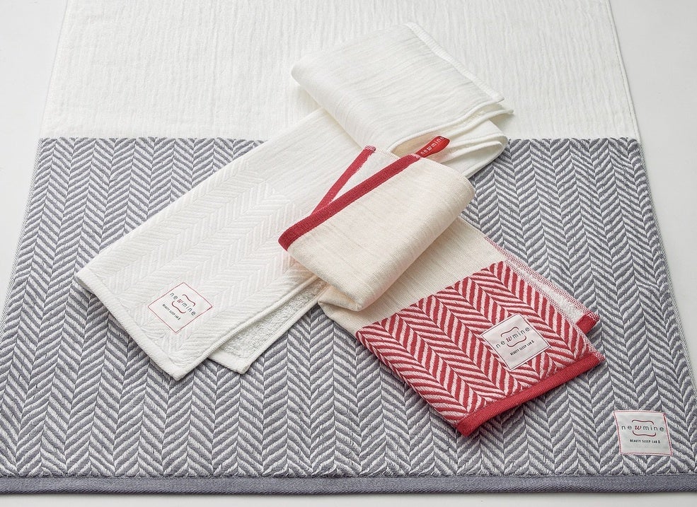 日中、手を洗った後や、顔や体にかいた汗を拭き取るのにおすすめな「newmine モイスチャーガーゼタオル」。表面のガーゼ部分にスクワラン加工糸を使用し、なめらかな肌触りが特徴です。裏面はやわらかなパイルになっています。