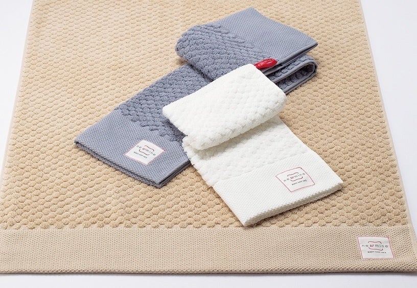 肌の水分が低下状態となる洗顔後は、肌を擦ることでバリア機能がダメージをうけ、トラブルの原因になる可能性があります。吸水性の高いパフィールコットンを使用した「newmine ポコポコタッチタオル」は、表面に凹凸構造を取り入れ、肌に軽くあてるだけで水分を拭き取ることができ、肌への摩擦ダメージを軽減します。