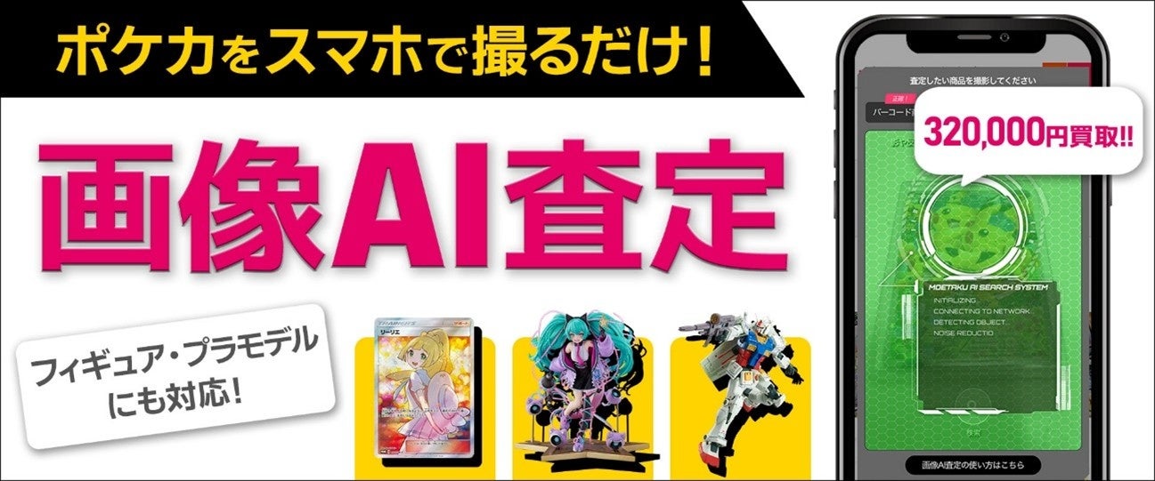 リネットジャパングループ株式会社(本社:愛知県名古屋市、代表取締役社長:黒田 武志)の子会社であるネットオフ株式会社(本社:愛知県大府市、代表取締役社長:星野 勝之)が運営する、ホビー買取サービス「もえたく!」は、2026年4月15日(水)より、スマートフォンで撮影した写真からAIが商品を特定し、その場で買取価格を表示する新機能「画像AI査定」の提供を開始します。