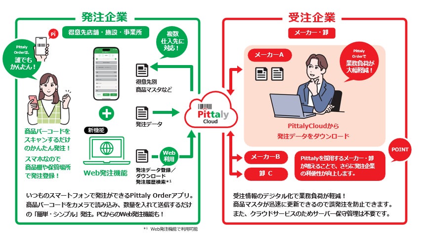 脱FAX受発注のスマホアプリ「Pittaly Order」にWeb発注機能を新たに追加