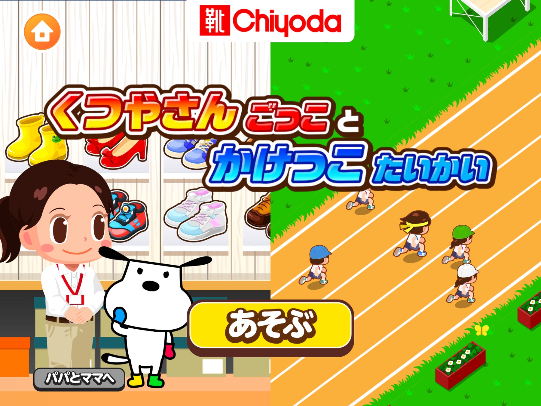 株式会社チヨダ(東京都杉並区 代表取締役社長 町野 雅俊)は、株式会社キッズスターが提供する⼦ども向け社会体験アプリ『ごっこランド(https://biz.kidsstar.co.jp/)』に、3⽉1⽇(火)から新ゲーム「くつやさんごっこ と かけっこたいかい」で出店いたします。