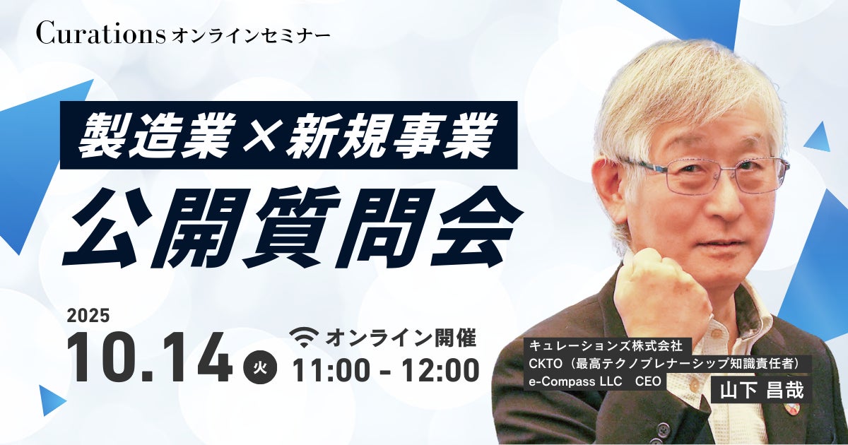 顧客企業のビジネス変革を成功に導くキュレーションズ株式会社(本社:東京都渋谷区、担当:野崎、以下当社)は、「製造業×新規事業 公開質問会」を2025年10月14日(火)に開催いたします。