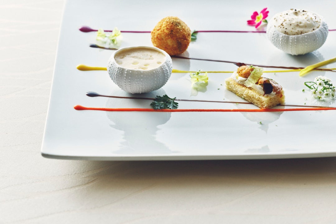 雲丹のパンナコッタ&とうもろこしのエスプーマ | 雲丹&岩のりのアランチーニ | カリフラワー&雲丹のスープ | 生雲丹のブリオッシュトースト ライム風味