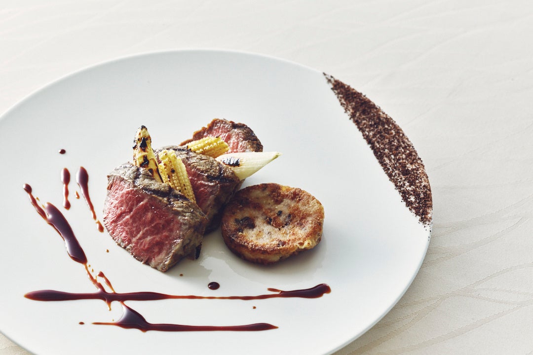 北海道産黒毛和牛フィレのグリル ホワイトアスパラガス 焼きポレンタ エスプレッソソース