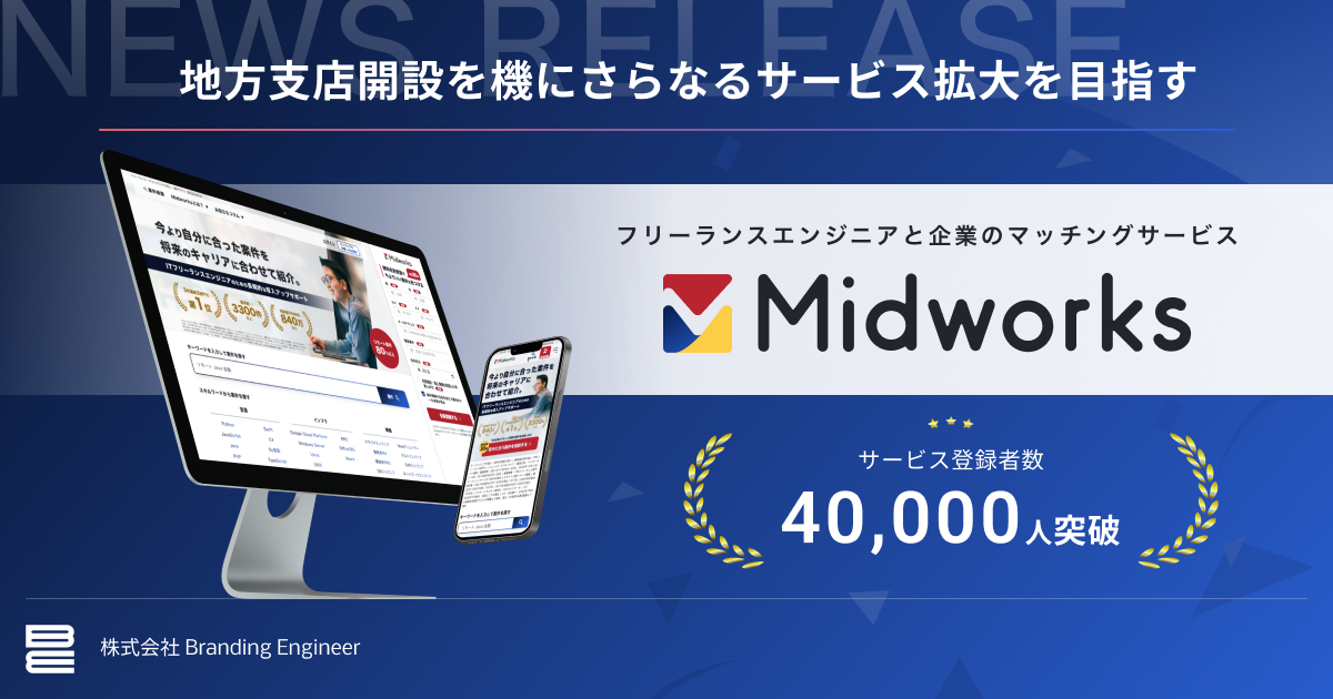 フリーランスエンジニアと企業のマッチングサービス「Midworks」の登録ユーザー数が40,000人突破