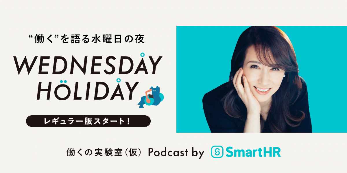 株式会社SmartHR(本社:東京都港区、代表取締役CEO:芹澤 雅人)が運営する、これからの働き方や企業のあり方を考える長期プロジェクト「働くの実験室(仮)」は、Podcast番組「WEDNESDAY HOLIDAY(ウェンズデイ・ホリデイ)」を2022年9月28日から毎週水曜日にレギュラー配信します。第1シーズンでは、メインパーソナリティにフリーアナウンサーの堀井美香さんを迎え、個人の働き方や、組織やチームのあり方、仕事を通じた社会との関わり方に至るまで、これからの働き方についてゆるやかに語ります。