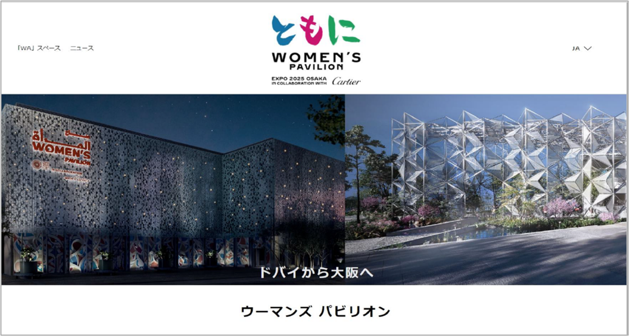公式サイトでは、ウーマンズ パビリオン出展におけるマニフェストから始まります。そして、私たちが今回のパビリオンにおける3つの主要なテーマ―「大いなる地球」、「女性のエンパワーメントと世代平等」、「セリフリフレクション&行動喚起」をはじめ、コンセプトである「ともに⽣き、ともに輝く未来へ」に込められた思いが語られています。また、画期的な取り組みとして、2020年ドバイ万博における日本館のファサードのリユースについても触れられているほか、このパビリオンを手がける2人の女性クリエイター、建築家永山祐子氏とアーティスト エズ・デヴリン氏を紹介しています。