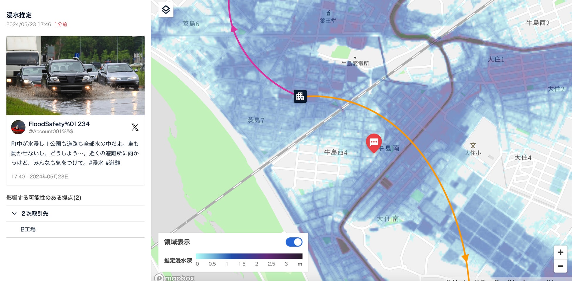 Spectee、水害発生時にサプライチェーンへの影響をリアルタイムに推定する新機能を『Spectee SCR』に追加