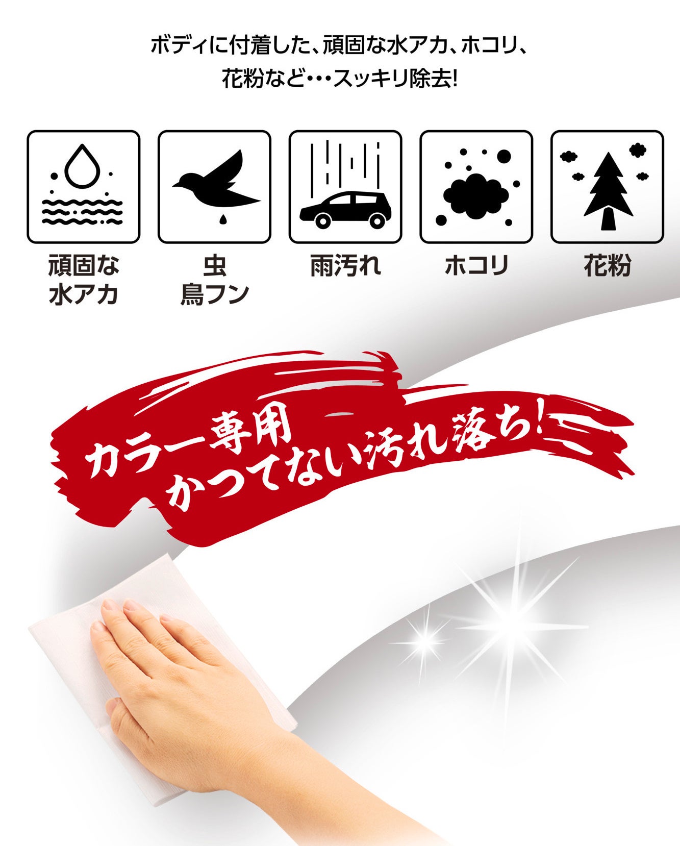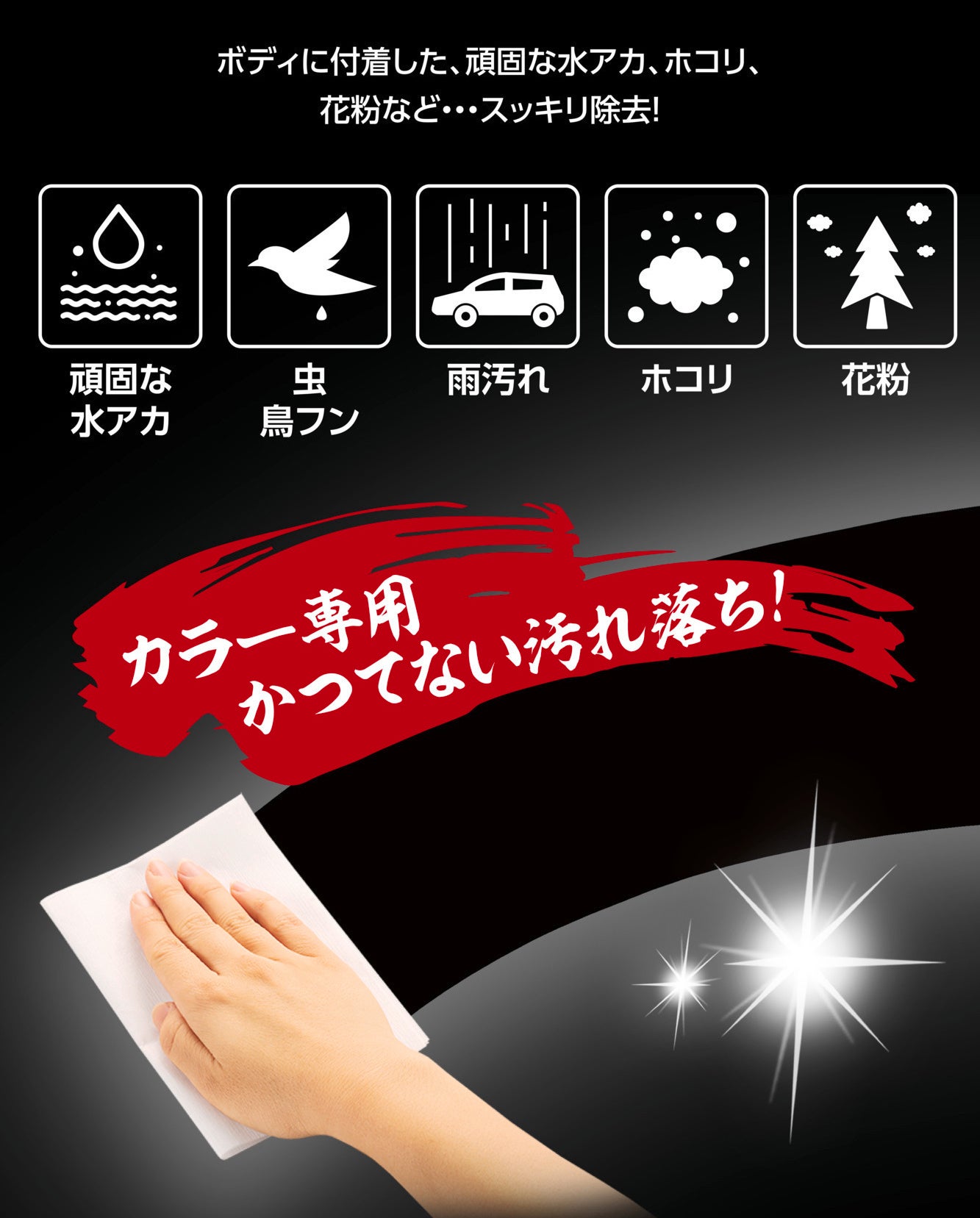 淡色車用:クリーナー性能を高めた処方で、雨ジミやしつこい汚れを除去