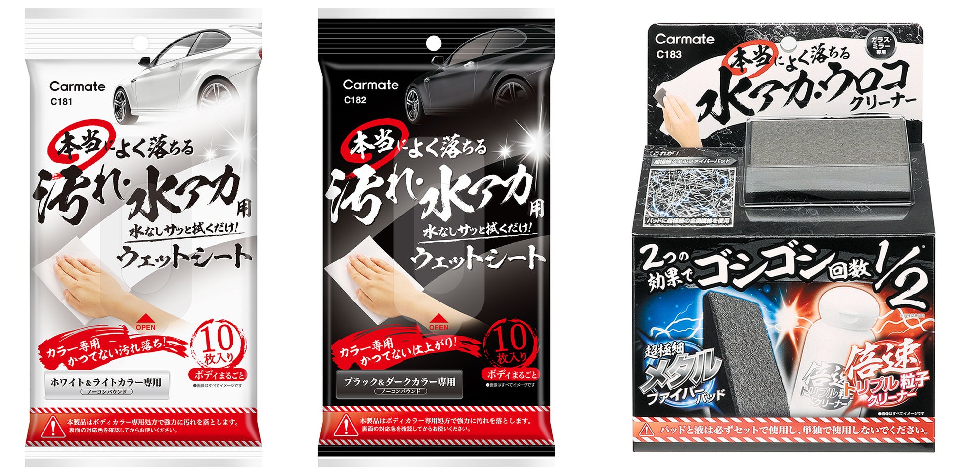 株式会社カーメイト(本社:東京都豊島区)は、淡色・濃色それぞれのボディカラー用に開発したウェットシートクリーナー2種と、こする回数を1/2にしたガラス用水アカクリーナー1種を4月8日(月)に発売しました。ロングセラーの水アカシャンプー「本当によく落ちる」シリーズの追加ラインアップとして、“かつてない汚れ落ち・仕上がり”を新コンセプトに展開します。製品名や詳細は以下をご覧ください。