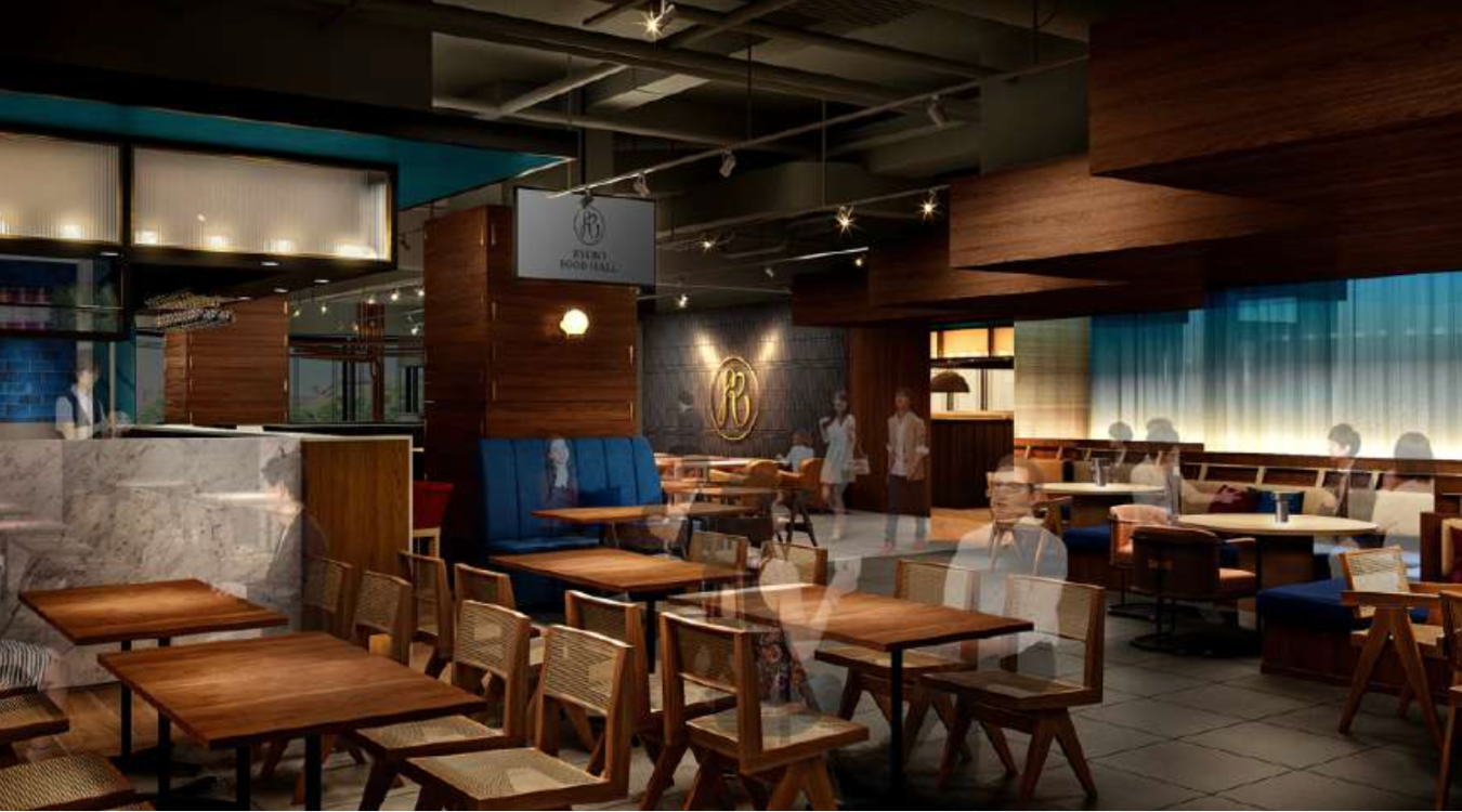 本施設が来年2026年に開業35周年を迎えるにあたり、大規模リニューアルプロジェクトの第一弾として、新たな食の体験価値を提供する「RYUBO FOOD HALL(リウボウフードホール)」がグランドオープンします。約350席のフロアに7店舗(26年春までにさらに2店舗開店予定)が集結し、食事の場所に留まらない「心も満たす食空間」が提供されます。
