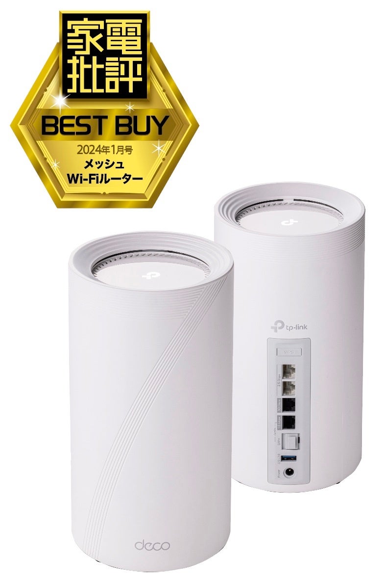 次代のWi-Fi規格の「Wi-Fi 7」にいち早く対応したルーター。5GHz帯の下りは平均速度で1.2Gbpsと他を圧倒。今回の製品中でも最速で、上りの平均速度でも全体で2番手と文句ありません。通信経路をあらわすストリーム数も12と余裕があり、これによって同時接続のWi-Fi器が増えても安定した通信ができます。本体サイズは大きいですが、白い筒型のデザインのために設置面積はそれほど必要としません。