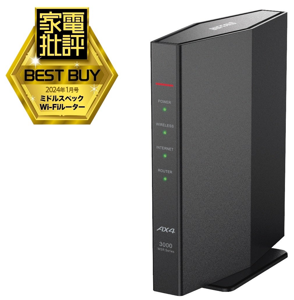 ミドルスペック編のベストバイは、10製品中2番目に安価だったバッファロー「WSR-3000AX4P- BK」に決定。5GHz帯の速度は上りが1位、下りが2位と文句なしの成績です。最大速度と平均速度の数値が近いのも、速度が安定していた証拠。本体が小型でストリーム数も4つですが、接続機器が少なめなら問題なしです。