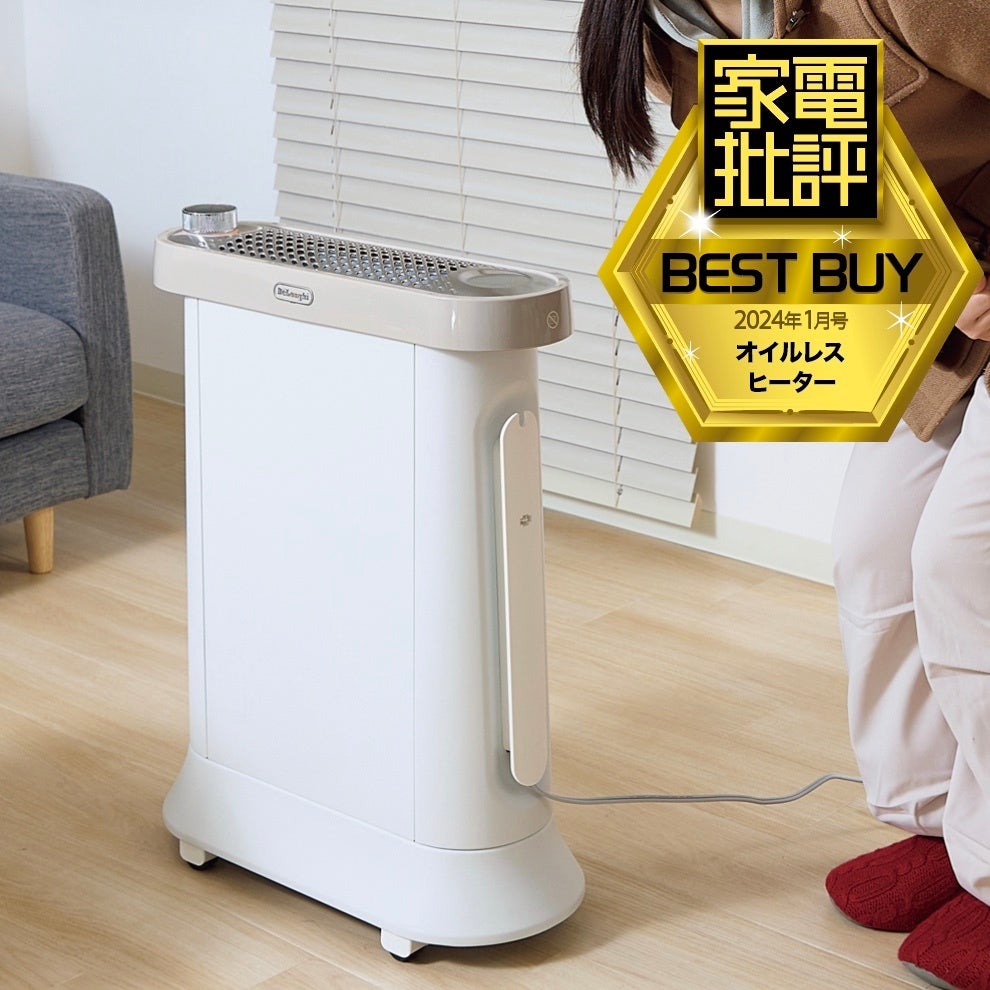 本体放熱部からの輻射熱と自然対流で部屋をあたためるタイプのヒーター。温風が出ないので、エアコンやファンヒーターと比べ乾燥しにくく、空気が汚れにくいのがメリット。肝心の暖房性能も十分。熱によりじんわりとあたためる構造のため速暖性能は劣りますが、室内の温度ムラも少なく、部屋全体があたたまります。また、機能面ではエコ運転やチャイルドロックなどの基本機能に加えて、スマホ連携機能を搭載。専用アプリを繋げば、スマホをリモコンのように使ったり、遠隔で操作したりと利便性が向上! 付属のアロマボウルにお好みのアロマを入れれば、香りを楽しみながら暖を取ることも。