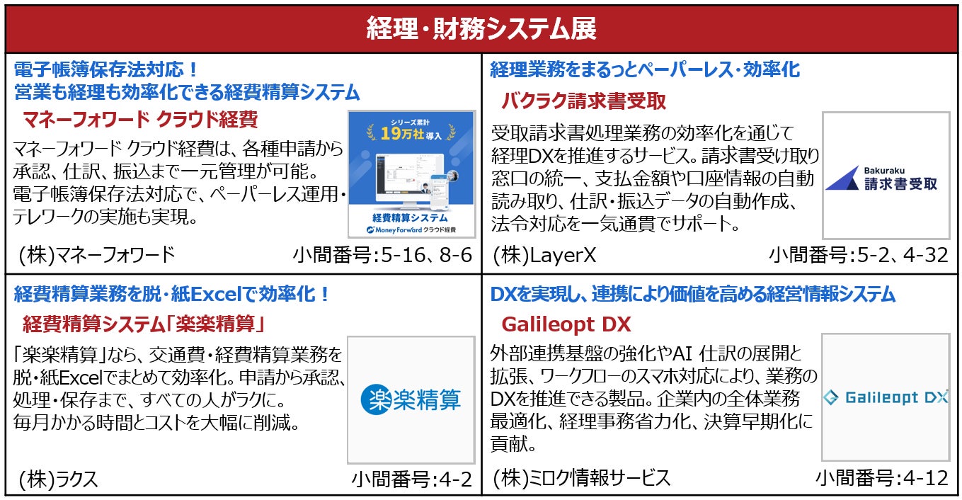 バックオフィスDXPO東京’25【秋】 出展製品・サービス(一部抜粋)
