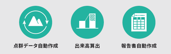 点群生成から報告書作成を、高精度・高速・簡単に実行できる3つの基本機能です。