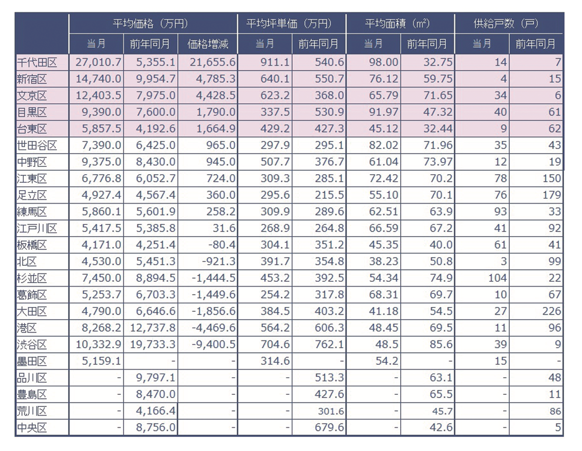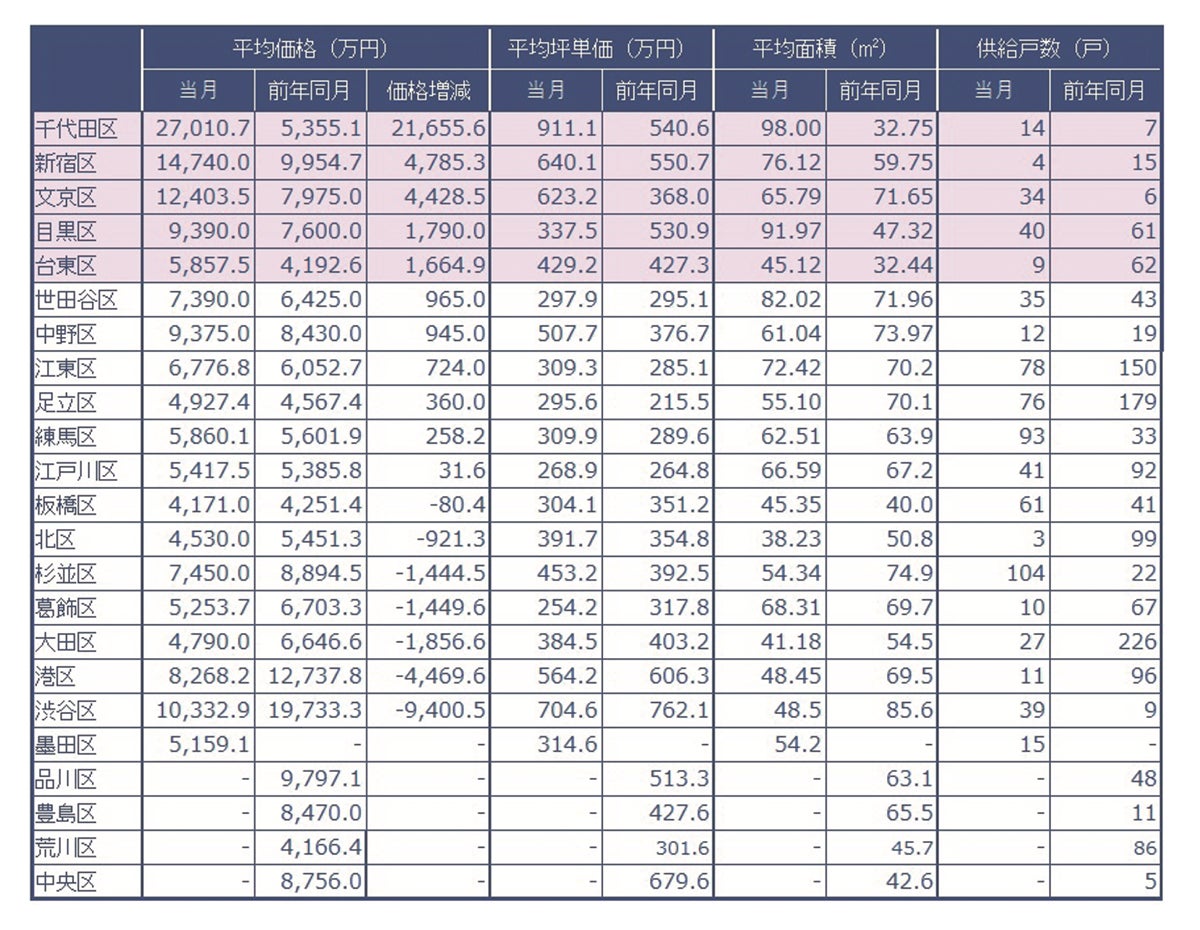 速報/月例新築マンション動向1月実績発表~千代田区の平均価格変動率が前年同月比404%増~