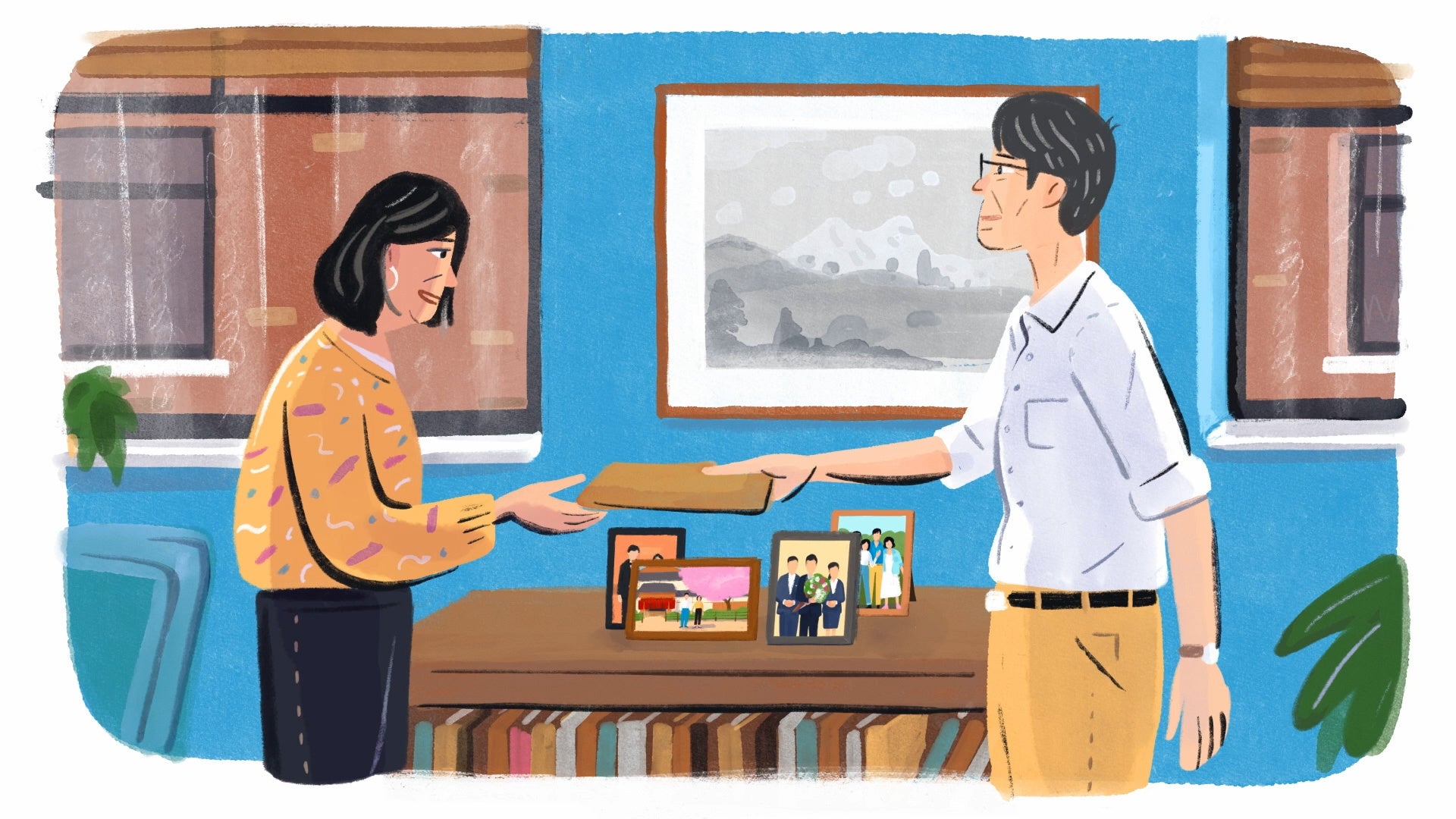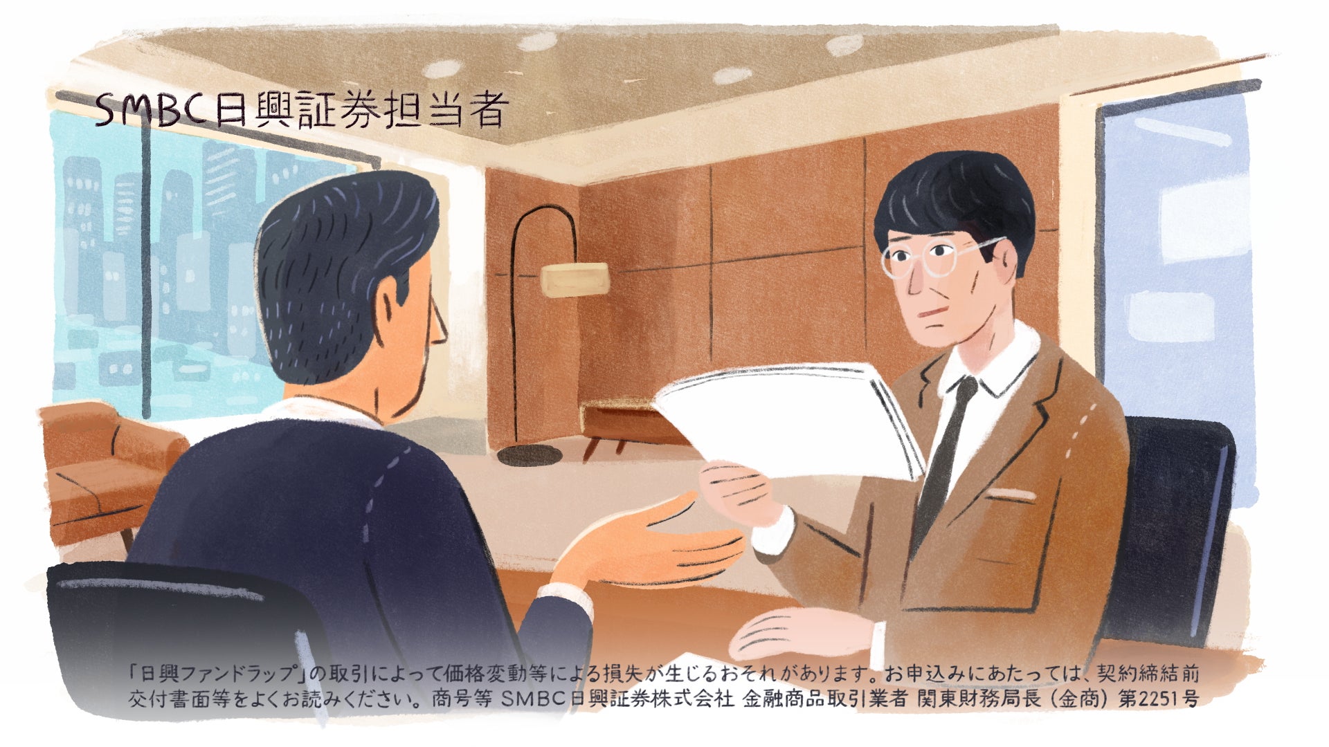 やわらかい光の差し込む書庫で、本を手に取るイチローさん。そこに描かれているのは、さまざまな人たちの資産にまつわるストーリー。「資産には、物語がある。」というイチローさんの語りとともに、本の中の、それぞれの資産の物語が、イラストとともに繰り広げられていきます。