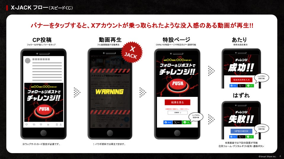 スマートシェア株式会社が、Xアカウントが乗っ取られたかのような没入感ある動画を再生し、キャンペーン訴求をはかるサービス『X JACK』を提供開始