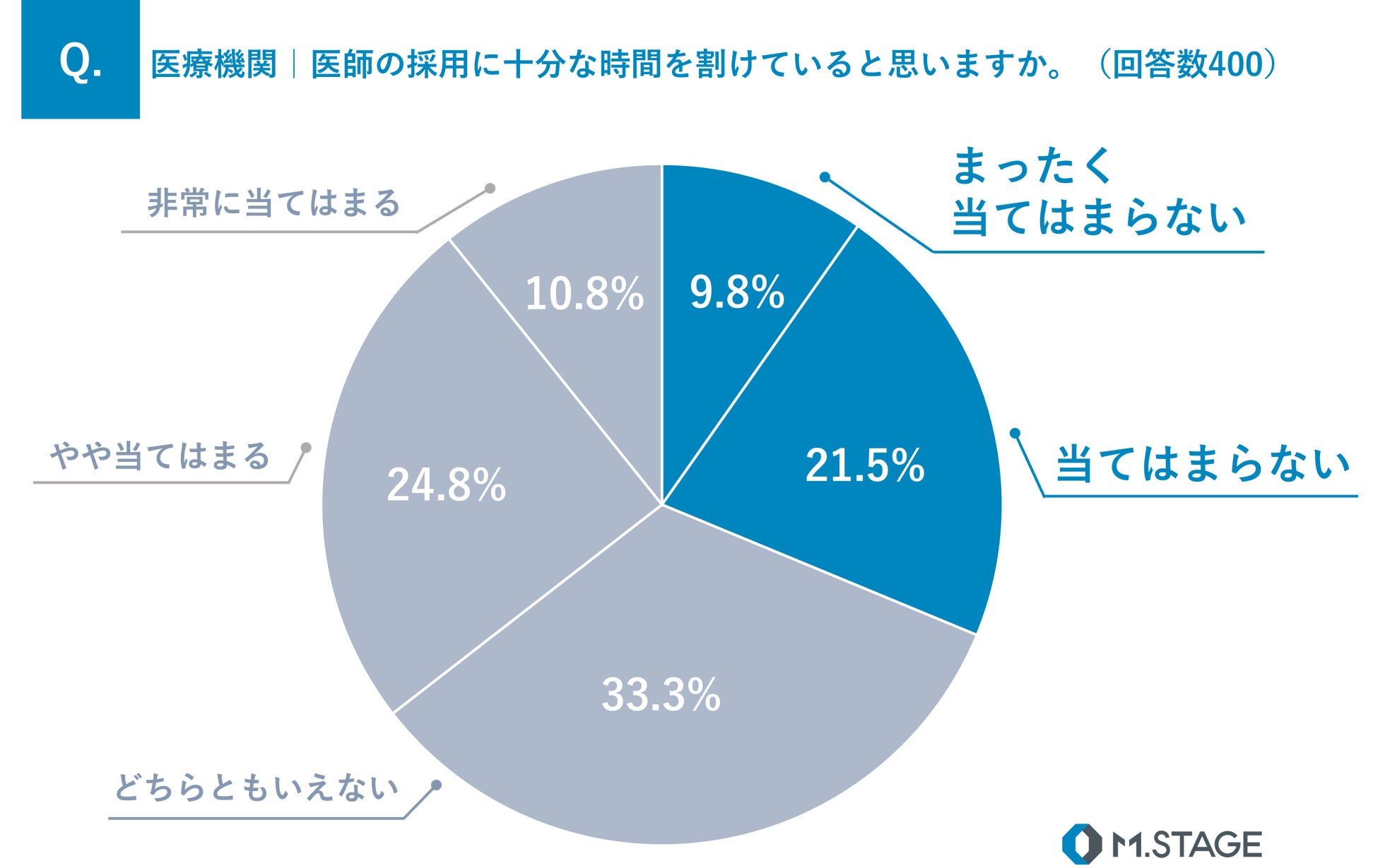 【医療機関の医師採用担当400名に「医師の採用」に関するアンケートを実施】3人に1人が採用に十分な時間を割けていない
