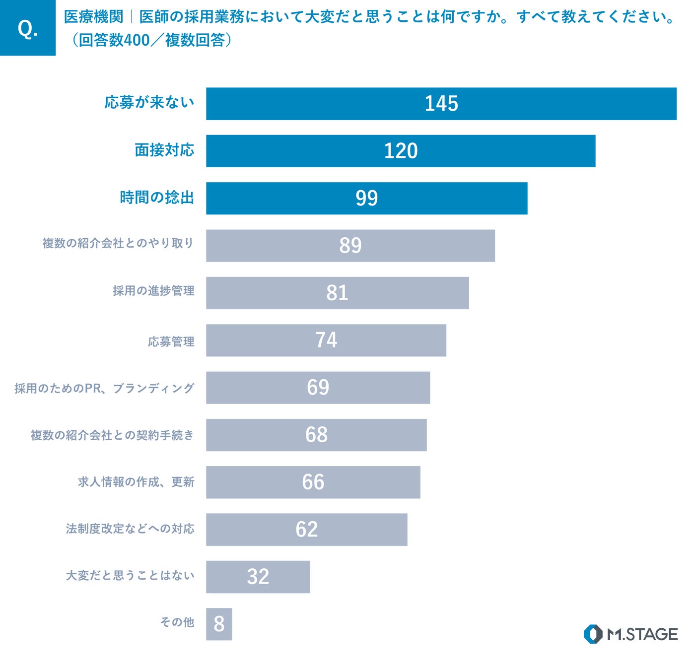 ・医師の採用業務において大変なこと「応募がこない」が最多