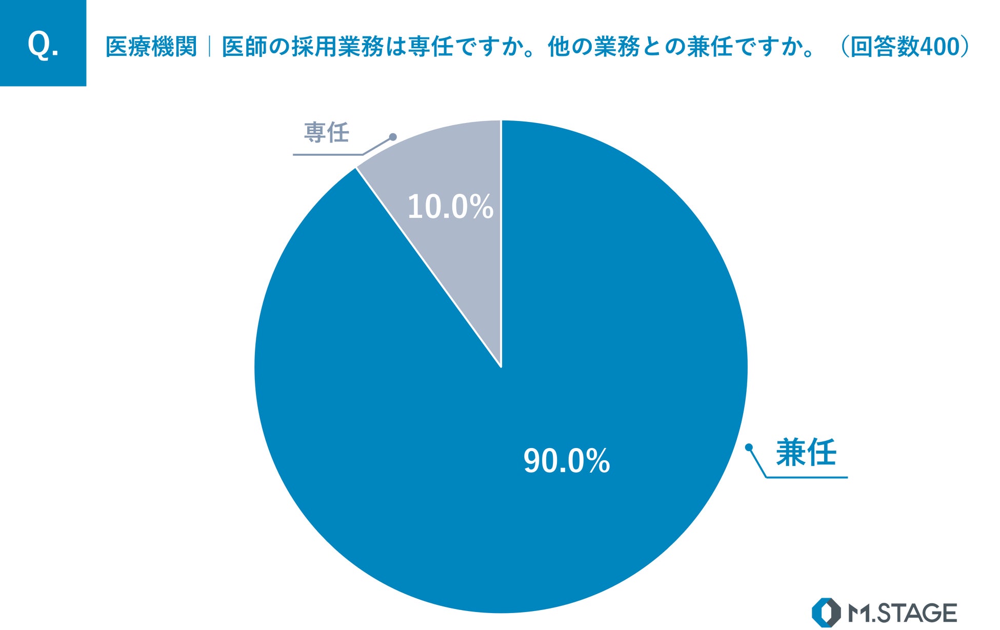 また、医師の採用業務を他の業務と「兼任」で対応している担当者は9割にも上る結果となりました。