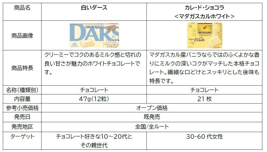 森永製菓株式会社(東京都港区芝 代表取締役社長・太田 栄二郎)は、ミルクにこだわった粒チョコレート「DARS」が発売30周年、チョコレートの完成形「カレ・ド・ショコラ」が発売から20周年を迎えること、両商品ホワイトチョコレートが人気であることを記念して、4月6日<シロの日>に合わせ「究極のホワイトバイトキャンペーン」を開催します。