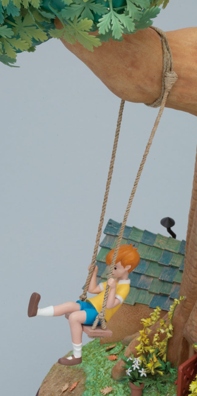 100エーカーの森にそびえる木をイメージしたツリー型のドールズハウスは6層構造。本シリーズでは、回転式の6フロアに「くまのプーさん」の名場面を再現したミニチュアを組み立てていきます。