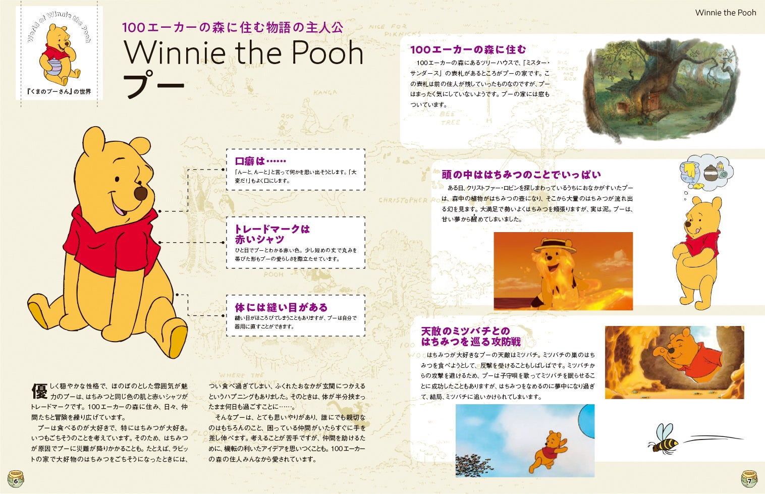 毎号、「くまのプーさん」の世界に登場するキャラクターや、100エーカーの森の名所などを紹介。
