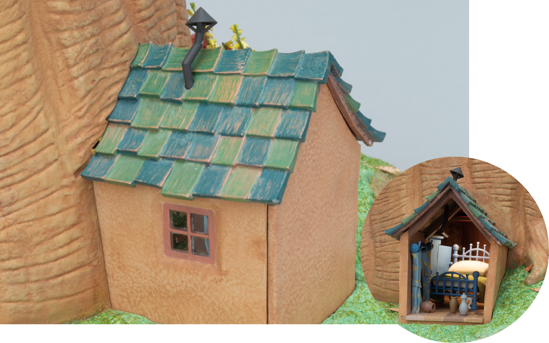 窓の隣には、煙突のついた小屋も再現。
