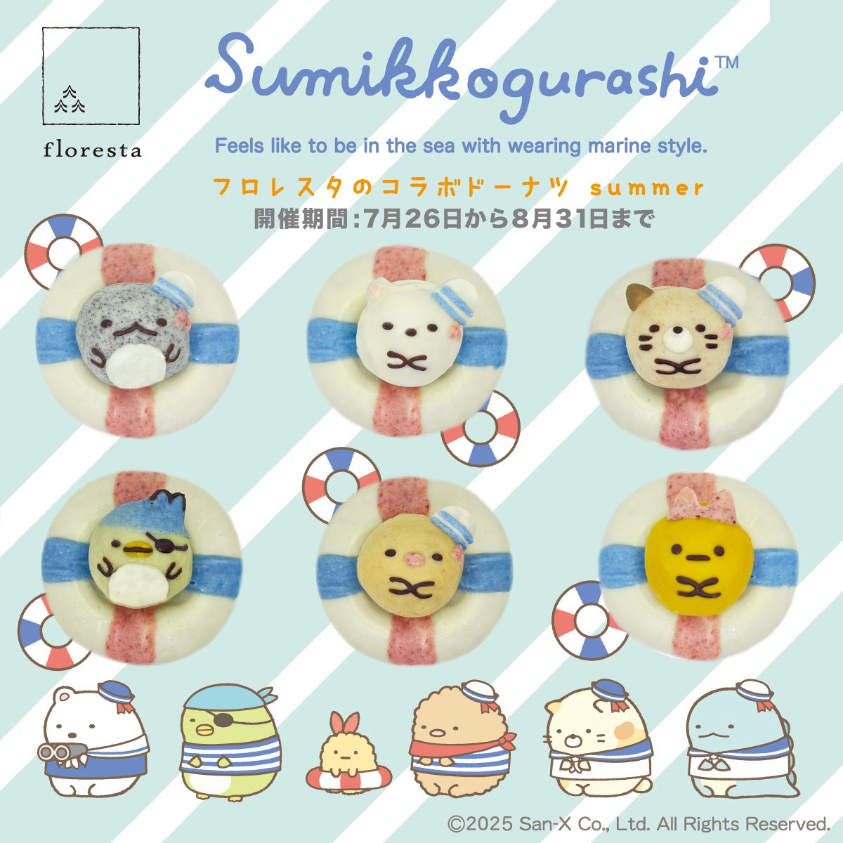 株式会社フロレスタ(本社:大阪府堺市/代表取締役社長:櫻井睦)は、2025年7月26日(土)〜 8月31日(日)の期間限定で店頭及びオンラインストアにて「すみっコぐらしコラボドーナツ」を販売いたします。
