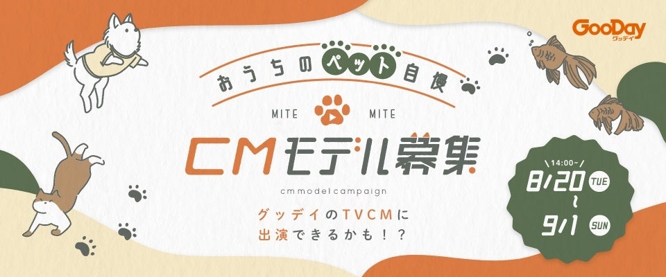 株式会社グッデイは、投稿頂いた動画や写真の中から独自の審査基準により選定し、グッデイ「秋のペットフェア」のTVCMに出演するペットを決定します。