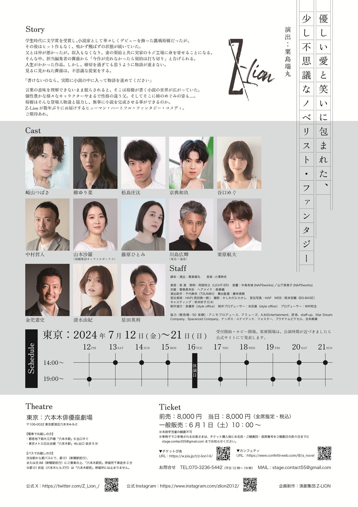 タイトル 演劇集団Z-Lion2024年度公演『a Novel ⽂書く show』