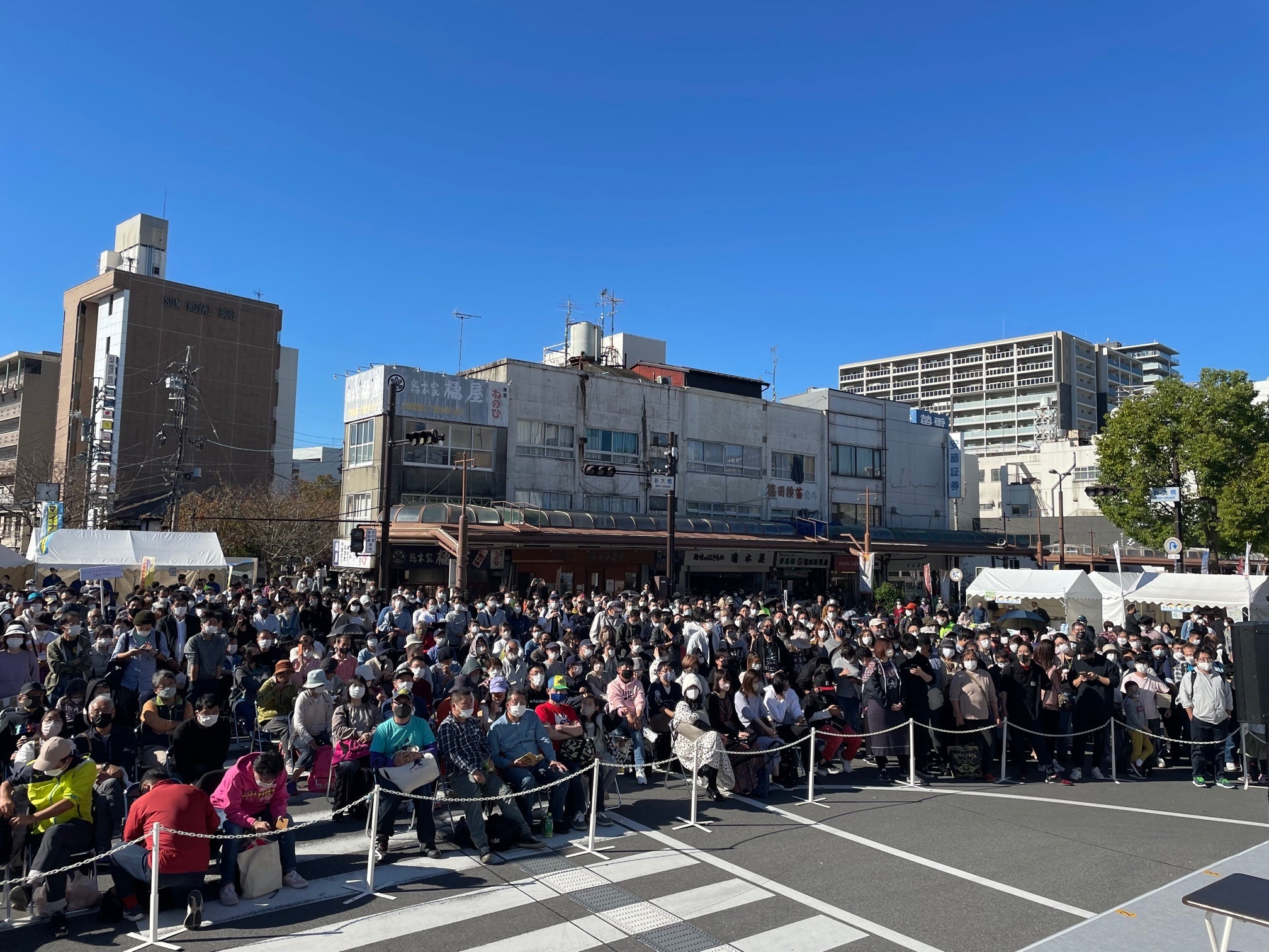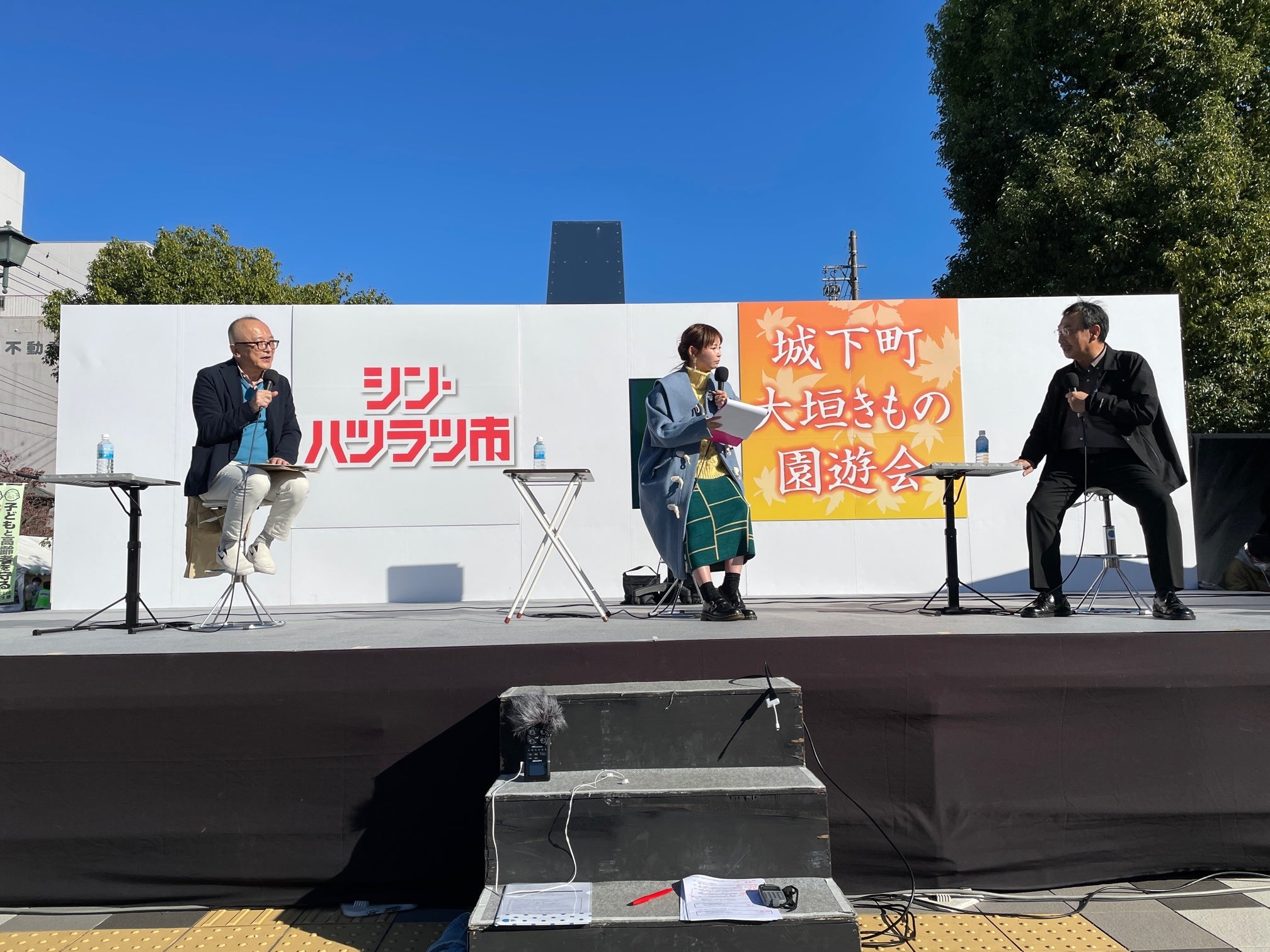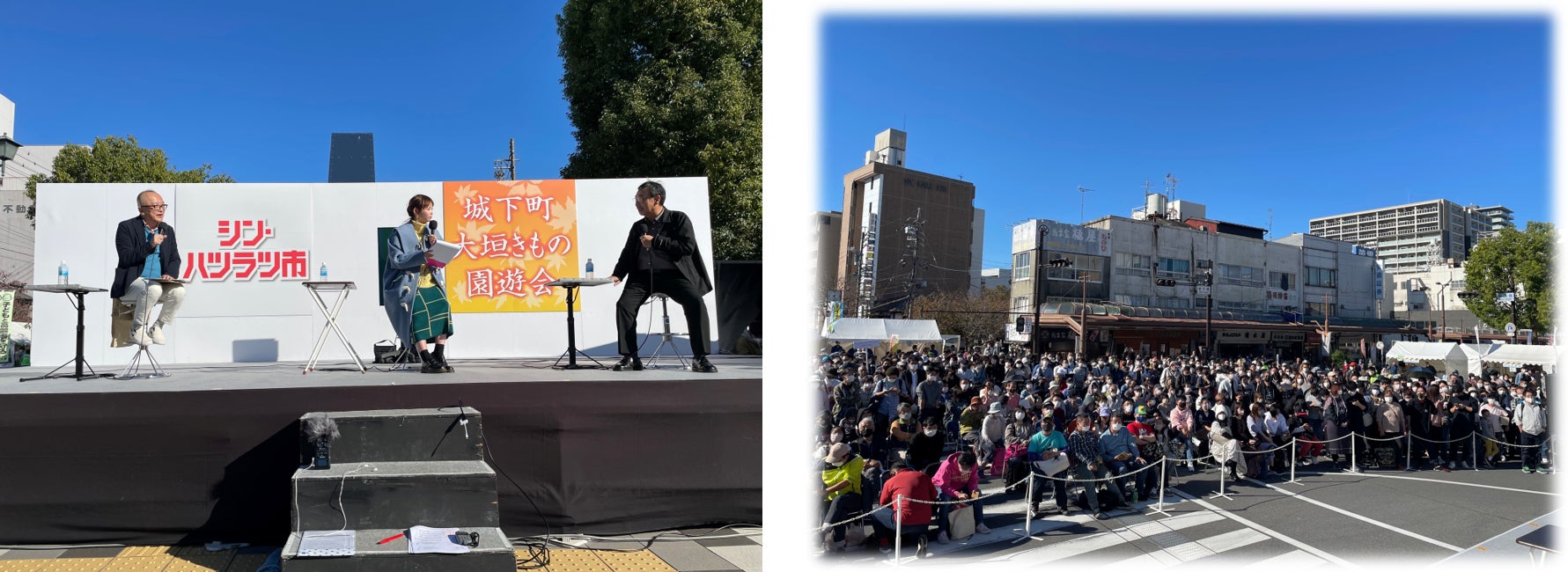 今回は、大垣城もそびえる岐阜県大垣市駅通り一帯で行われた「シン・ハツラツ市」のイベントの一環として実施。ゲストには、「城マスター」としても各メディアでお馴染みの千田嘉博教授を迎えて、歴史溢れる大垣の街でマニアックかつ、奥深い城トークに花を咲かせました。当日は、ニュースを席巻した岐阜市での大規模なイベントが開催されていたこともあり、「みんな来てくれるかな・・・」というちょっとした不安の中、秋晴れの公開録音会場前には1,000人を超える観客が集まり大盛況。中川翔子からは「こんな日に、こっちのイベントを選んでくださった奇特でスキマなみなさん!本当にありがとうございます!」と感謝のコメントも語られました。