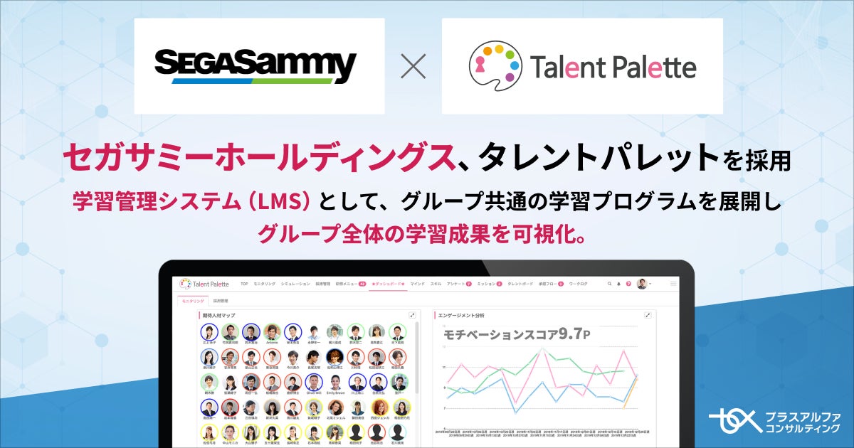株式会社プラスアルファ・コンサルティング(本社:東京都港区、代表取締役社長:三室克哉 証券コード:4071)は、データに基づく人材の活用、人的資本の開示、人事業務のDX化、リスキリングの推進などを目的に、多くの大手企業で導入が進んでいるタレントマネジメントシステム「Talent Palette(以下:タレントパレット)」の学習管理システム(LMS)をセガサミーホールディングス株式会社(本社:東京都品川区、代表取締役社長グループCEO:里見治紀、以下:セガサミー)に導入いただきましたことをお知らせいたします。