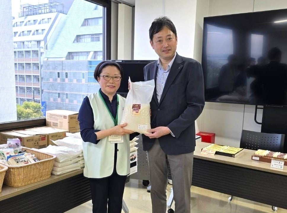 また、去る2026年4月4日(土)には、横浜市中区で行われたフードバンク横浜のイベント「中区 ひとり親支援」において、当社の代表取締役社長・岩﨑求起からフードバンク横浜へお米の贈呈を行い、支援活動に参加しました。
