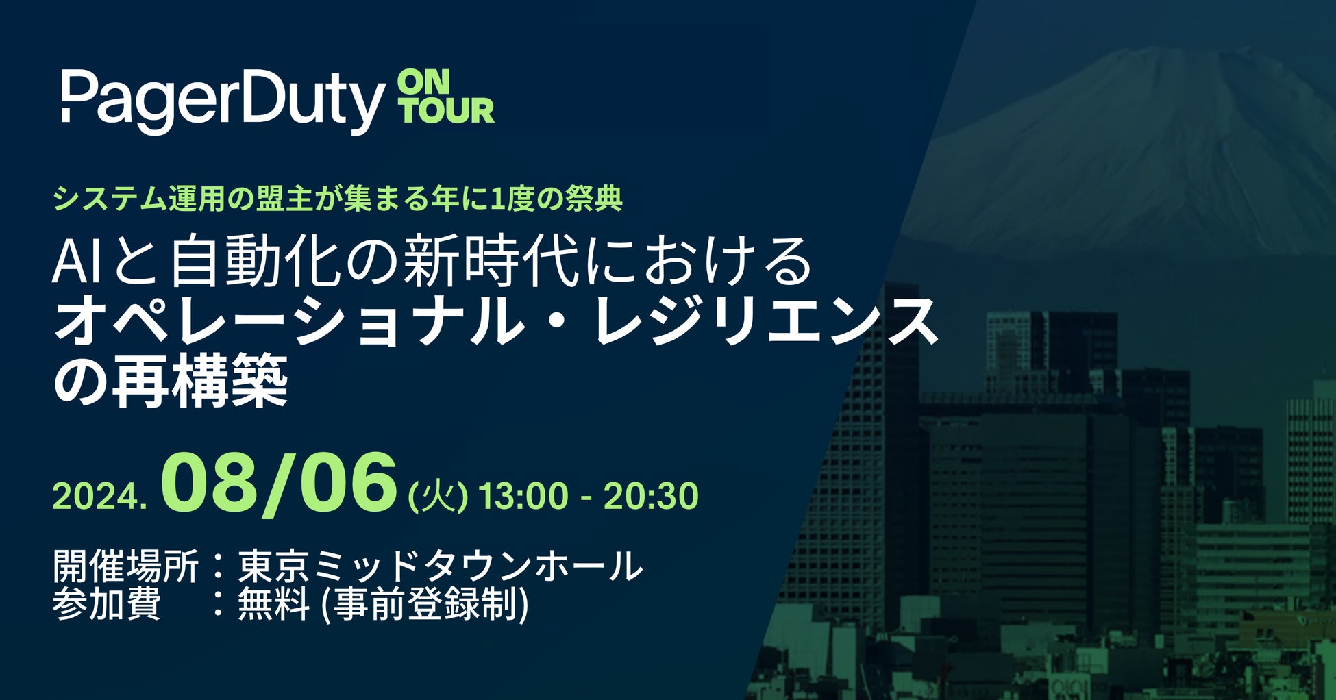 PagerDuty on Tour TOKYO 2024 公式サイト:https://www.pagerduty.co.jp/pagerdutyontourtokyo/