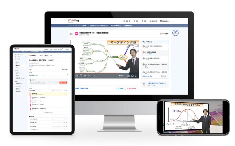 「スタディング」(https://studying.jp/ )は、短期間で合格した人々の学習法を徹底的に研究し、10年以上も改善を重ねてきた究極のオンライン資格取得講座です。「忙しい方こそ、もっと活躍して頂きたい」その思いから「スタディング」は開発されました。私達が目指しているのは、世界一「学びやすく、わかりやすく、続けやすい」学習手段になり、皆様の持っている可能性を最大限に引き出すことです。