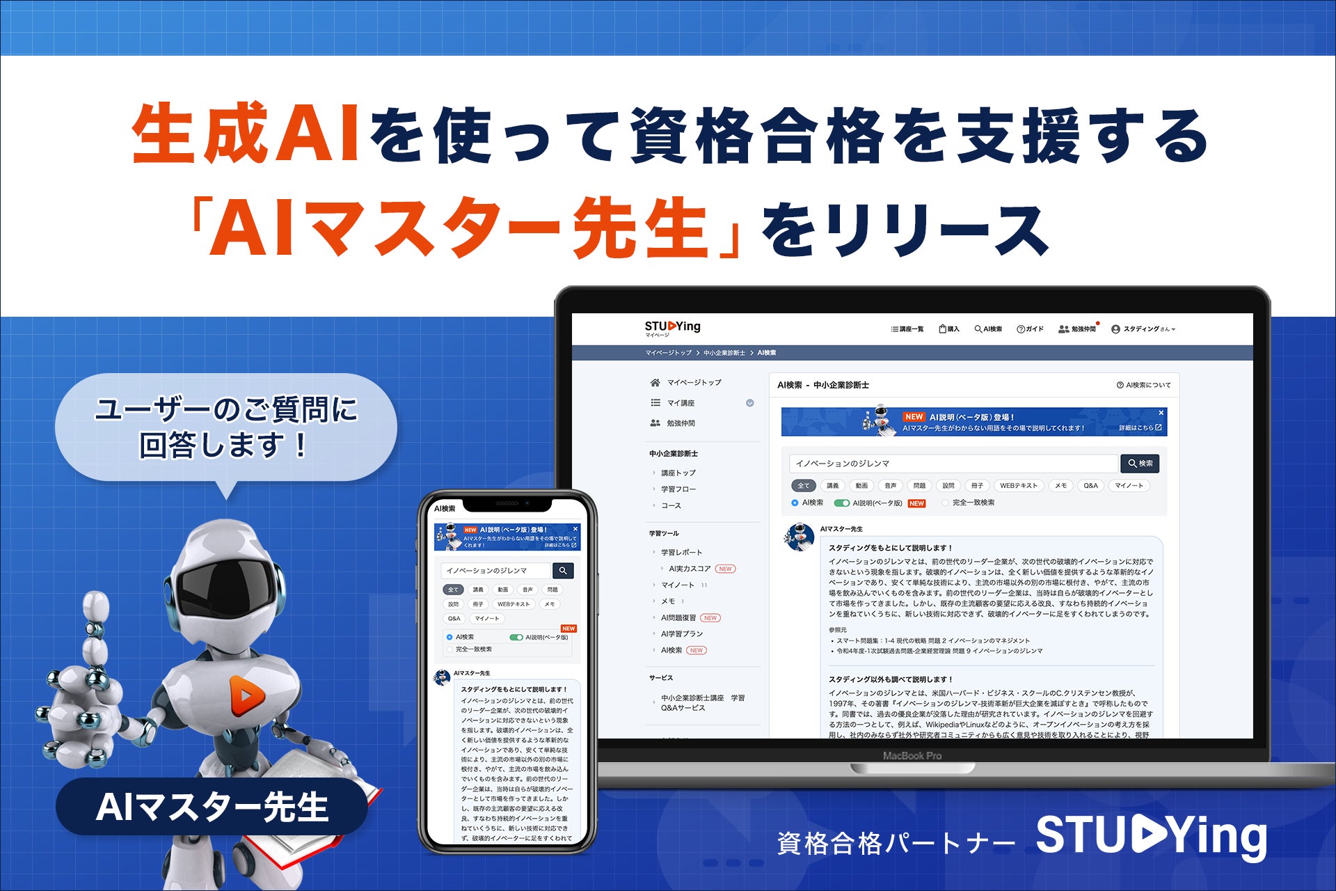 スタディング、生成AIを使って資格合格を支援する「AIマスター先生」をリリース