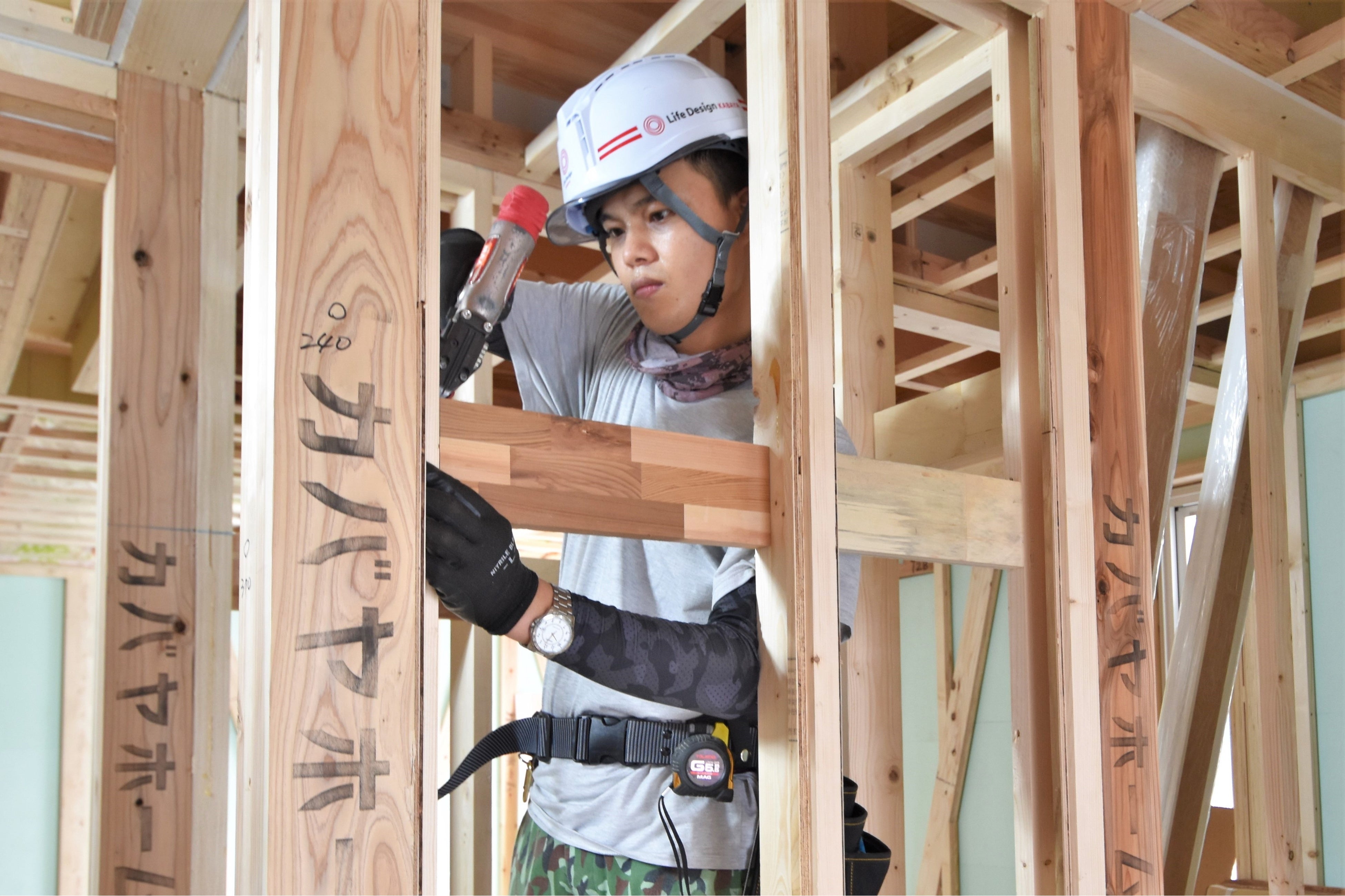 教育・指導を担当する社員大工は、今回、ベトナム人社員大工を迎えるにあたり、『現在、ベトナムではコンクリートブロック造の住宅がほとんどを占めていて、木造に関する基準や法律が定まっていない。国境を超えて、日本の木造住宅の技術を直接教えられるのは、僕たちにとって大きいやりがい。自分たちが今まで得たものを伝えて、将来、この3人がベトナムで活躍してくれることを期待している。』と述べました。