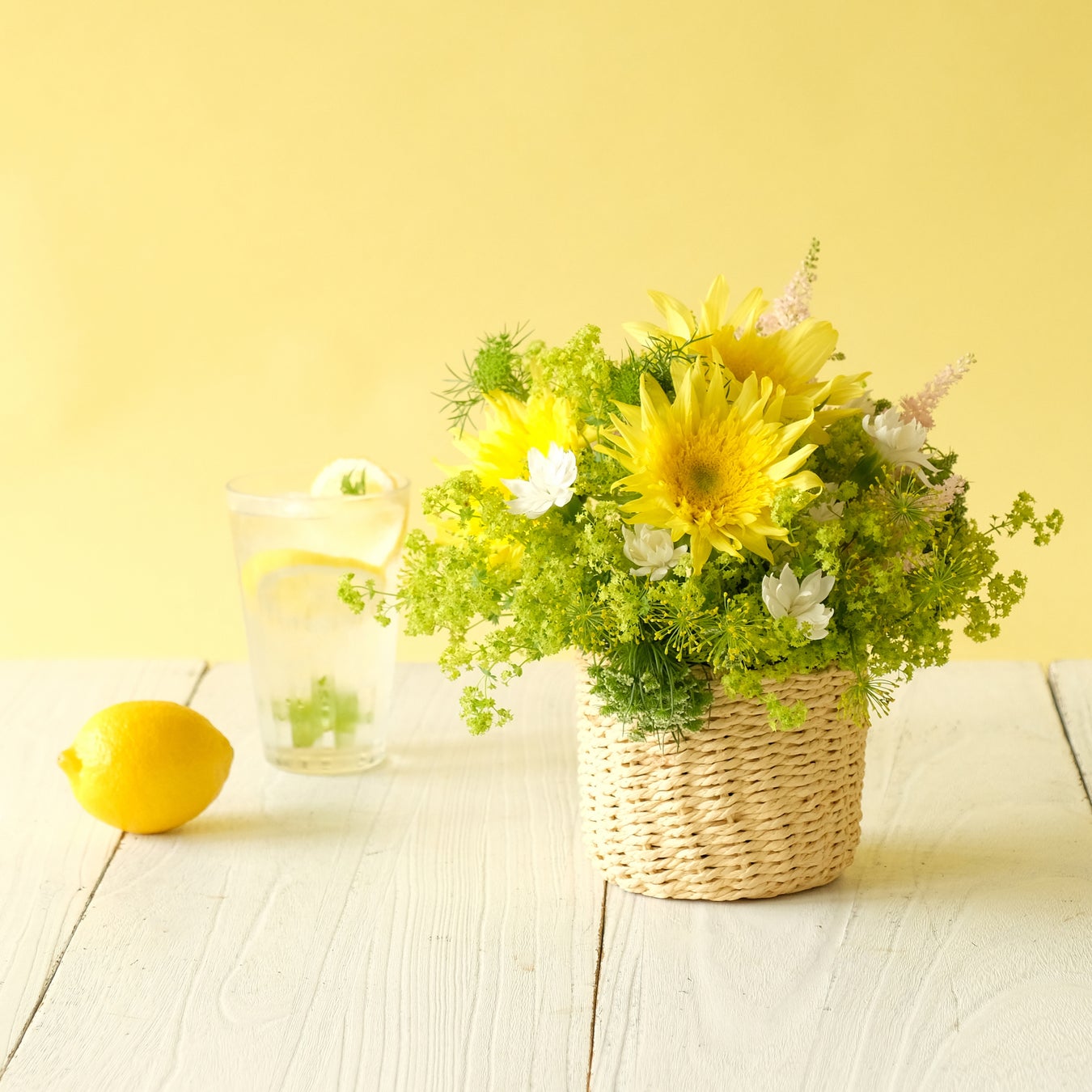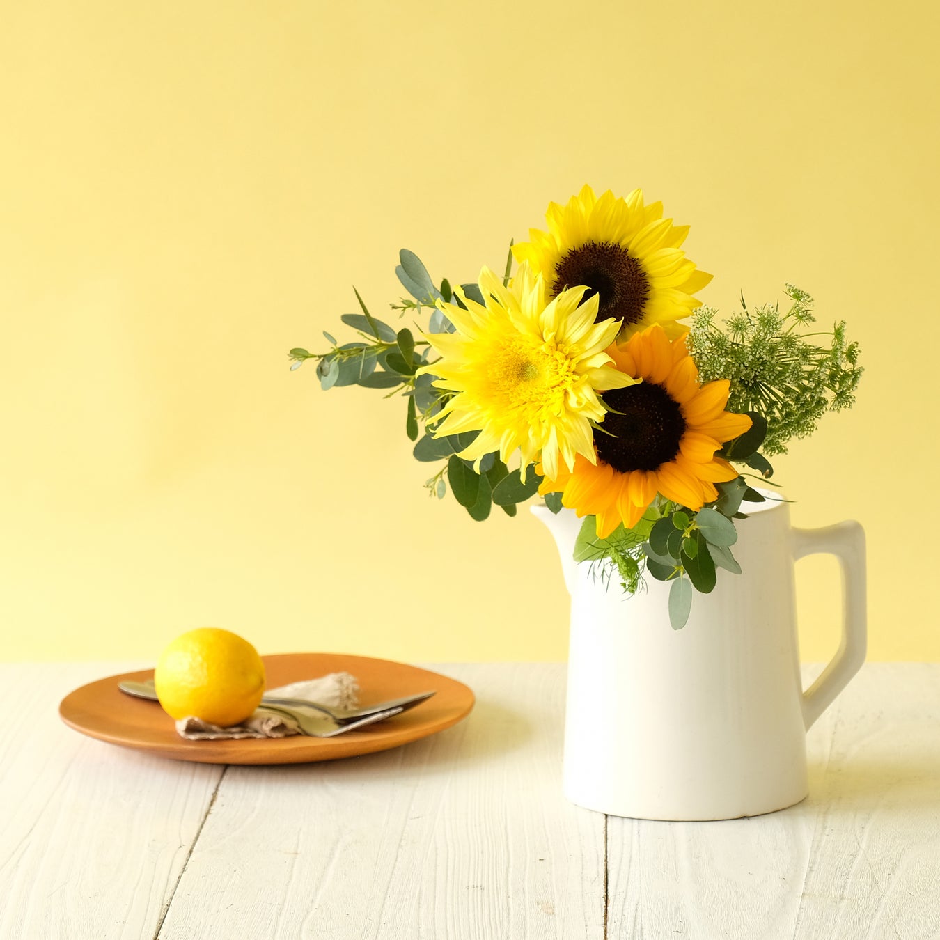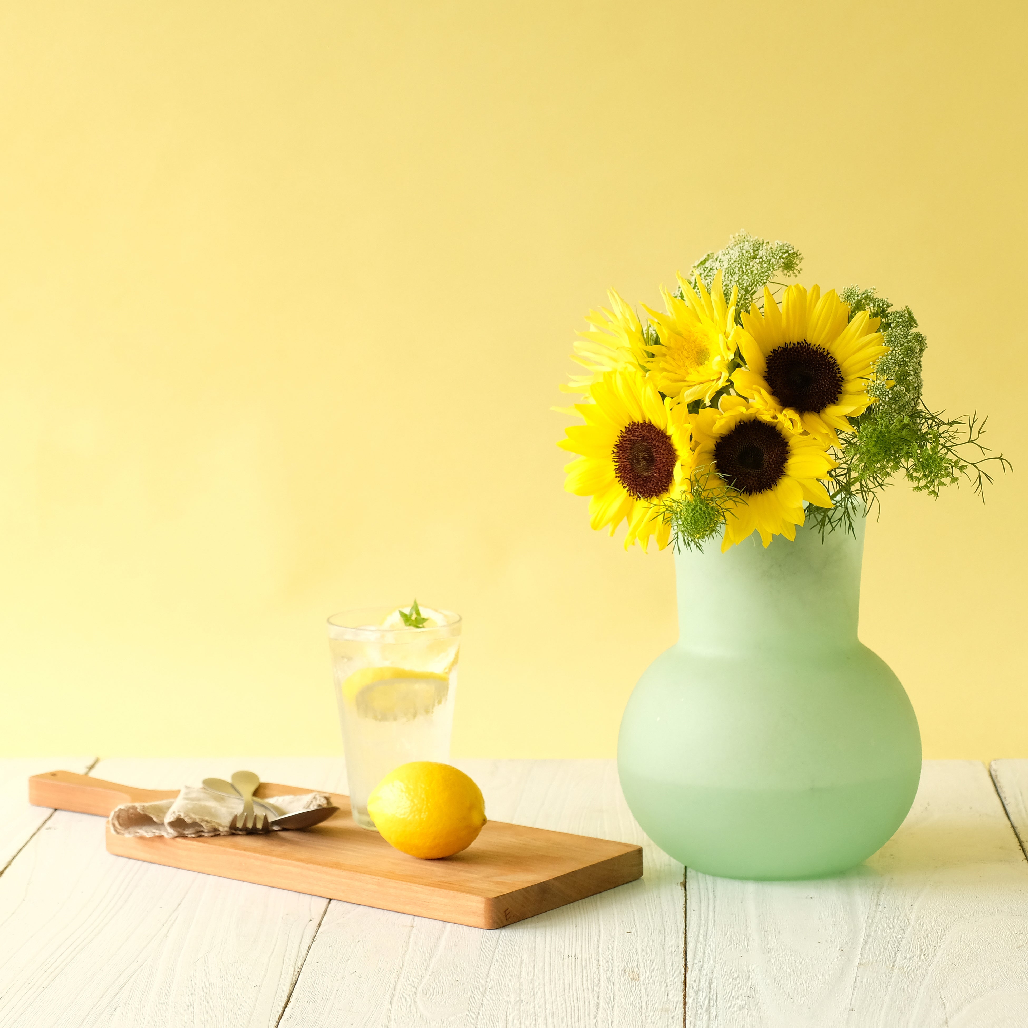夏の花と言えばひまわりを思い浮かべる方も多いのではないでしょうか。太陽のようにまぶしい黄色の花を見ていると、暑さに疲れた気持ちが元気になっていくようです。そんな夏のアイコン、ひまわりの魅力を最大限に引き出すため、シンプルにデザインしました。多くの芸術家も愛した旬の花ひまわりを、ギフトやご自宅での快適な暮らしにぜひお選びいただけると嬉しいです。