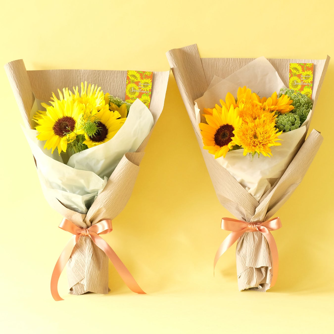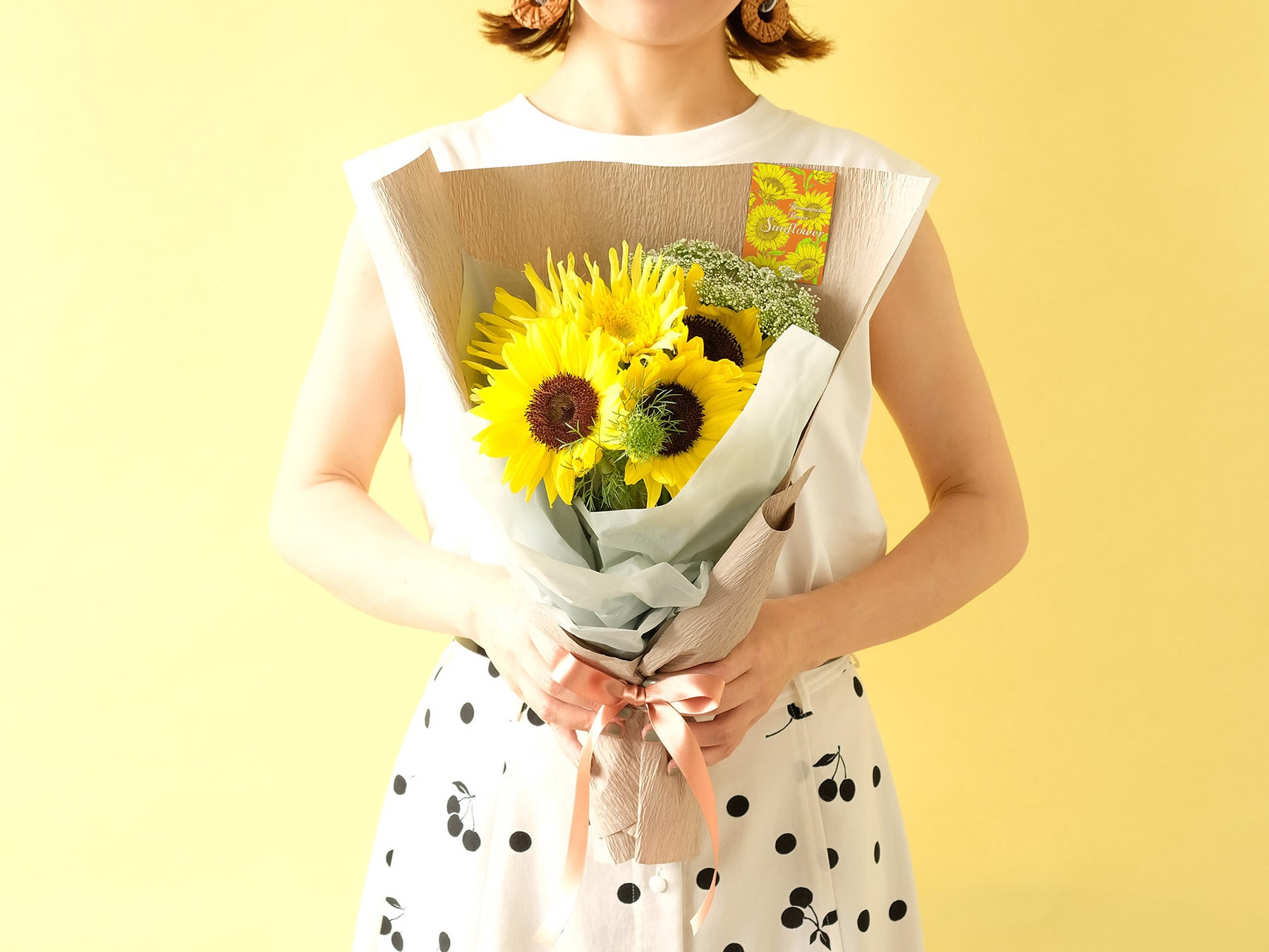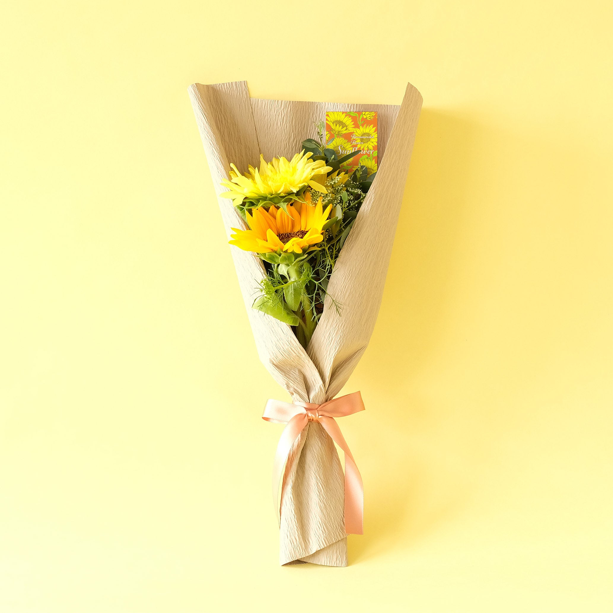 ショップおすすめのひまわりをシンプルなブーケに仕上げました。「憧れ」や「あなただけを見つめる」という花言葉もあるひまわりは、大切な人への贈り物にもおすすめです。