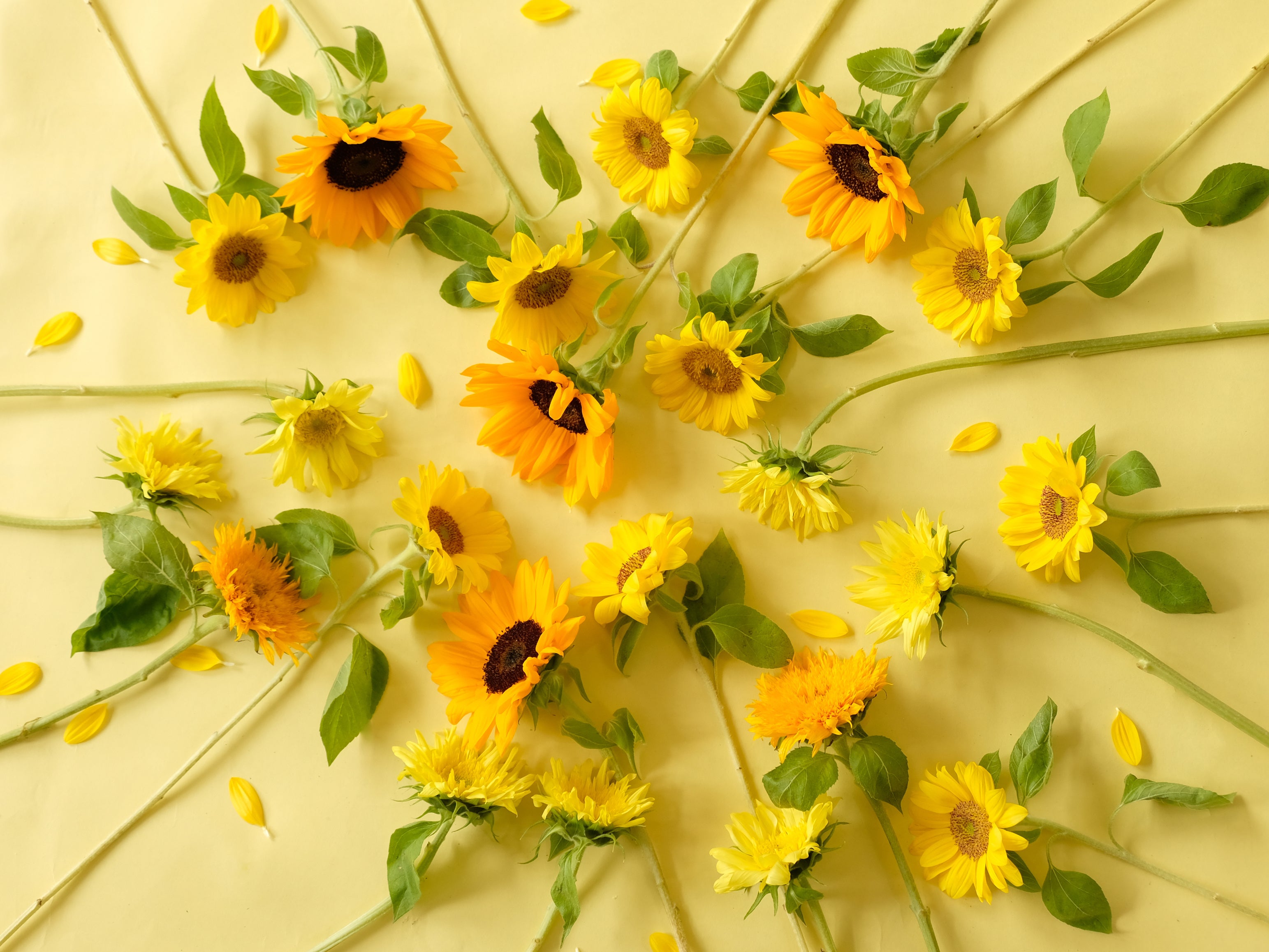 真夏の炎天下に咲いているため丈夫そうに見えるひまわりですが、切り花は意外にデリケート。茎が腐りやすいので水は少な目で管理して、毎日水を替えてあげてください。葉も黄ばんできたらすぐにカットしましょう。長持ちさせるポイントは、切り口を新しくして水を吸いやすくすることです。水替えの際にぜひ切り戻しを行ってみてください。